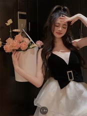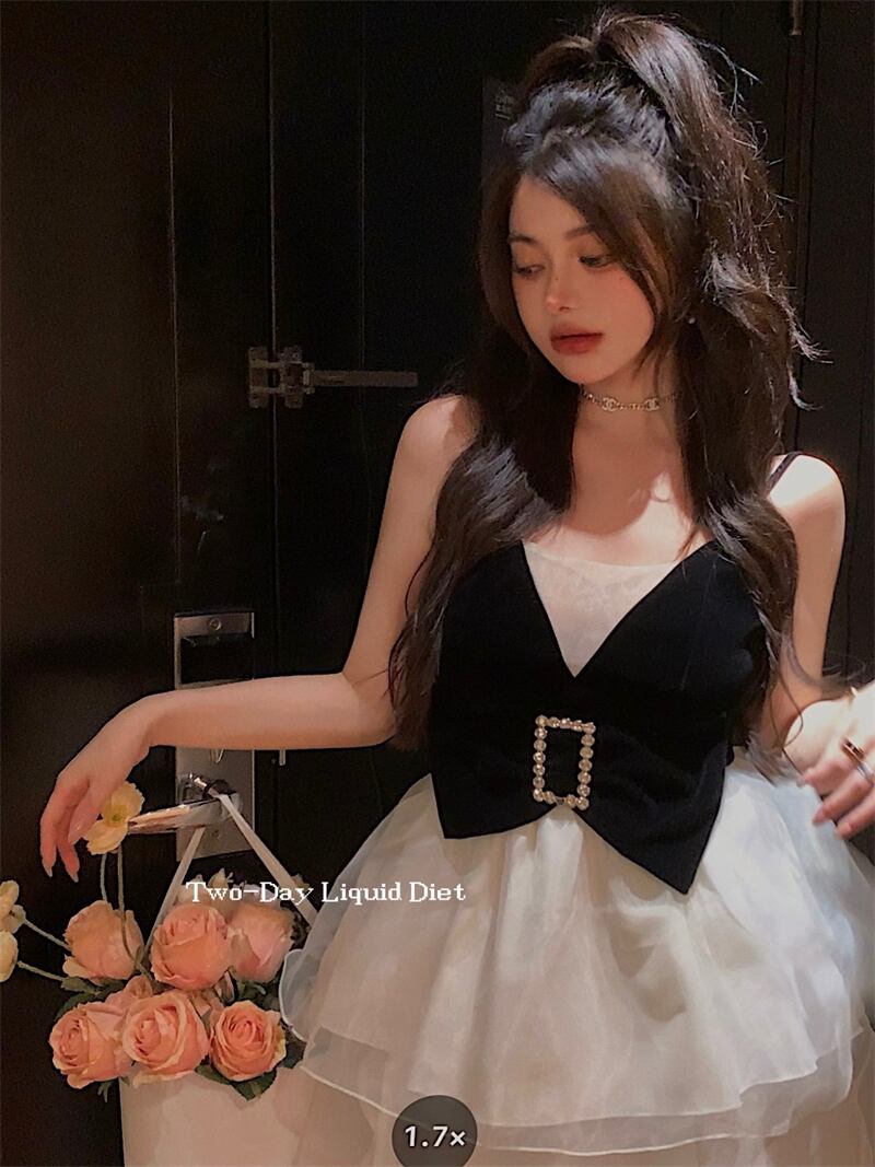 French temperament fluffy dress 2022 summer new small little dress suspenders a-line short skirt women ショート ふわふわ サマー 夏物 スカート Aライン nana84290042134 | modepoisson