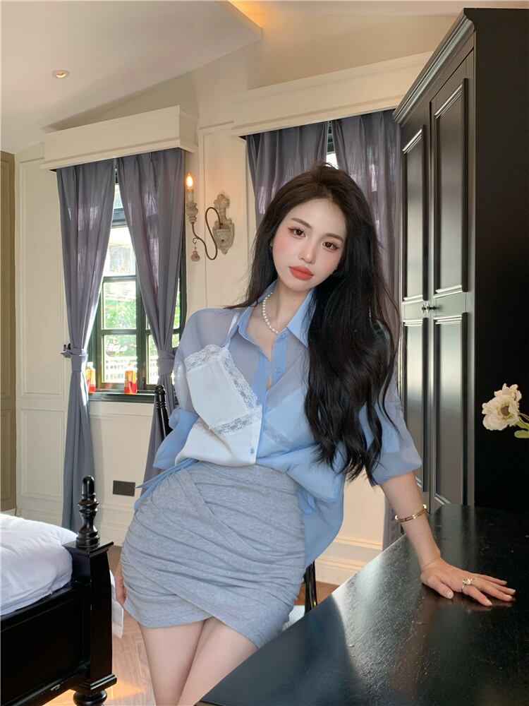 -quality fake two-piece sunscreen shirts pure desire skirt 2022 summer new salt series y outfit suit シャツ サマー 夏物 スカート ピュア nana16933929298 | modepoisson