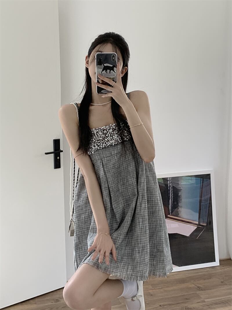 Sling dress sparkling sequins design sense 2022 summer new sexy thin pure desire a-line skirt women サマー 夏物 スカート Aライン ピュア nana99737551123 | modepoisson