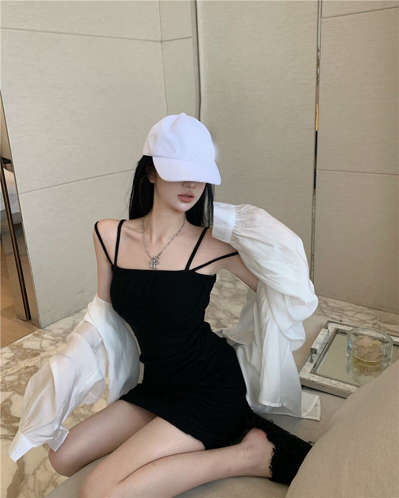 Hot sexy slim suspender dress female 2022 summer new tight bag hip short skirt sunscreen top suit ショート サマー 夏物 スカート スリム nana28927947386 | modepoisson