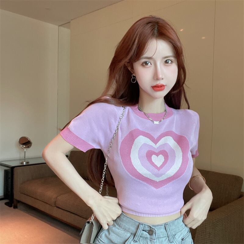 Chic and beautiful thin short-sleeved knitwear women's clothing 2022 summer new pure desire to slim and slim top サマー 夏物 スリム ピュア nana5246610037 | modepoisson