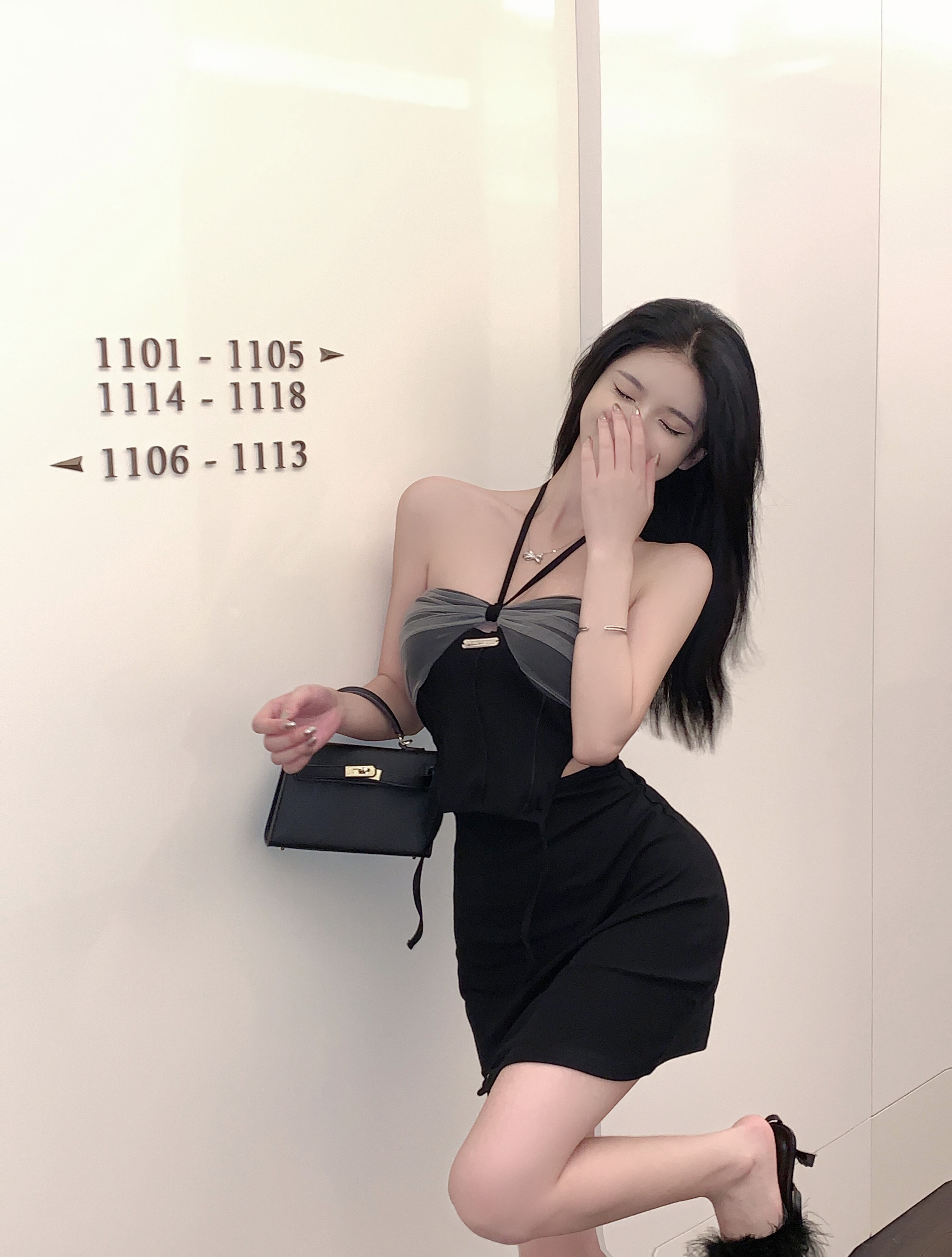 Hot black halter suspender dress female 2022 summer new temperament hollow sleeveless a-line short skirt ショート ブラック サマー 夏物 ノースリーブ スカート Aライン nana64317156463 | modepoisson