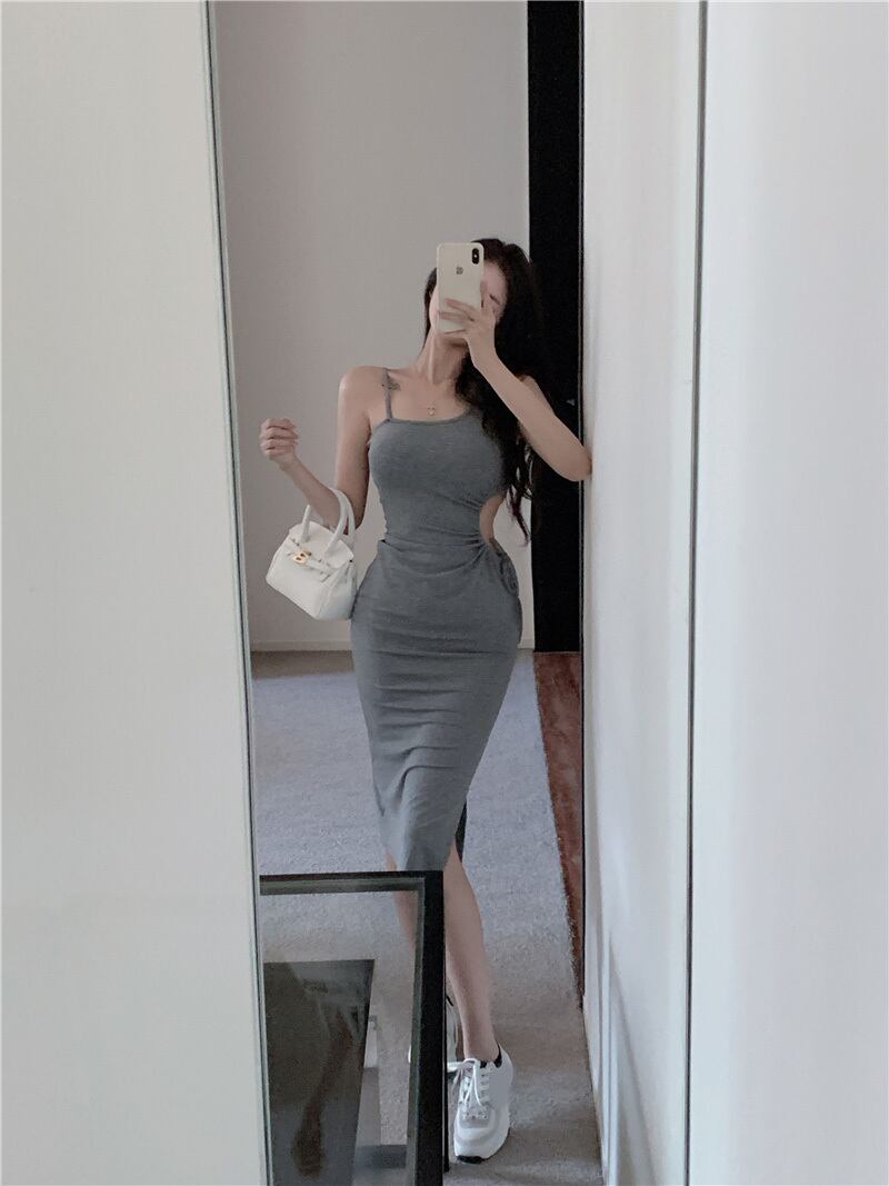 Gray temperament waistless knitted dress women's 2022 summer new royal sister French niche sling bag hip skirt サマー 夏物 スカート nana90696578263 | modepoisson