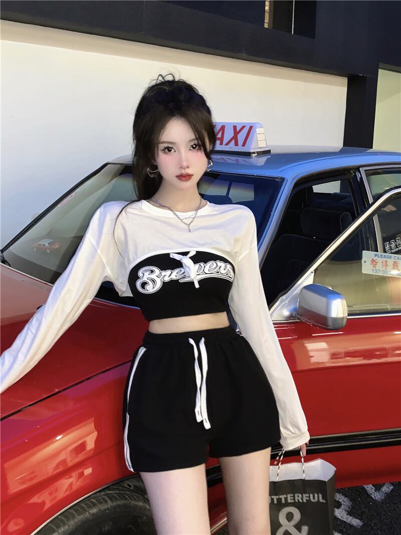 Net red age-reducing salt series wear three-piece suit female 2022 summer new vest short top high waist casual pants ハイウェスト ショート レッド カジュアル サマー 夏物 nana48563842093 | modepoisson