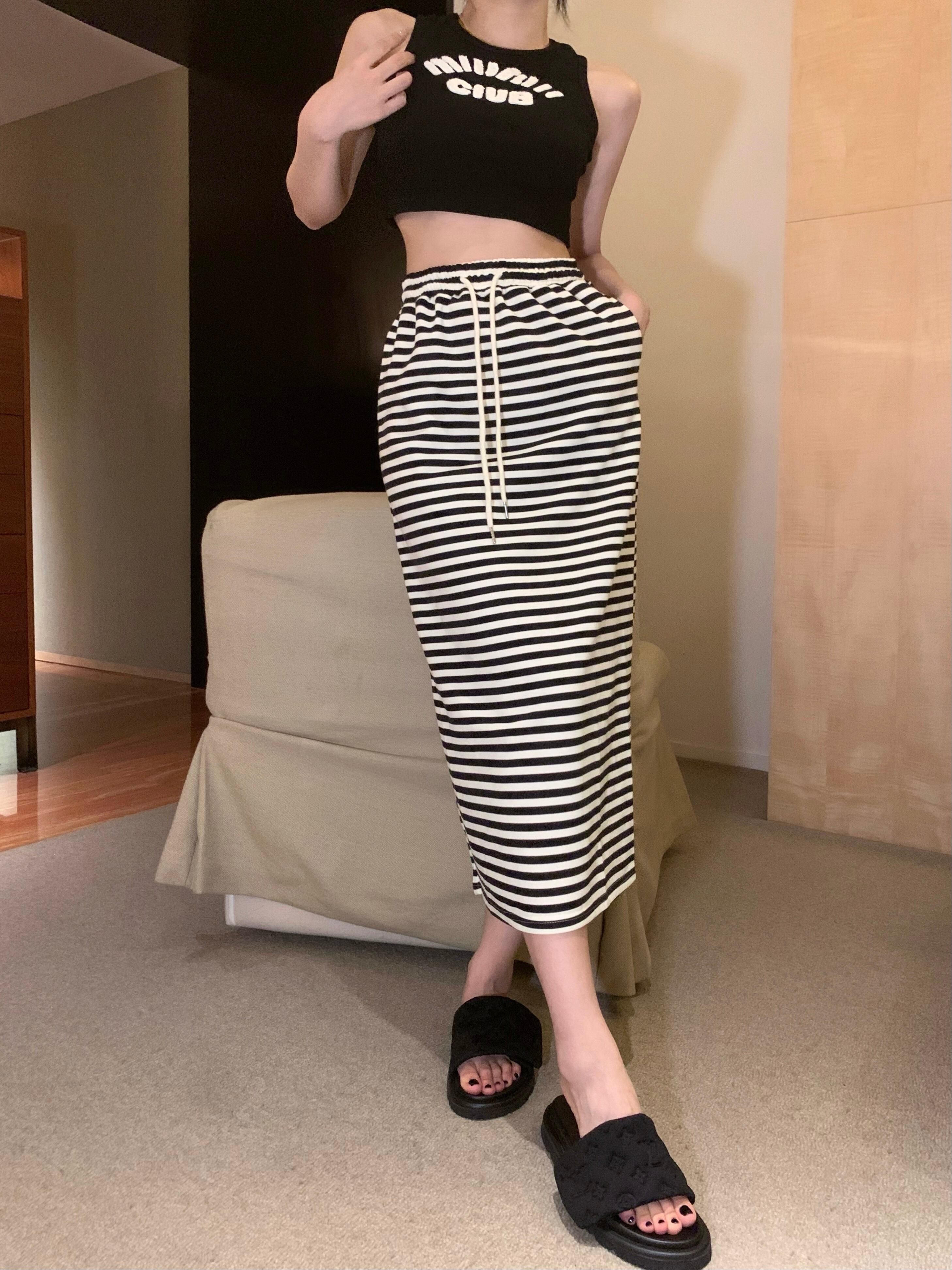 Skirt suit 2022 summer new fashion striped vest high waist slim skirt women's casual two-piece suit ハイウェスト カジュアル サマー 夏物 スカート ストライプ スリム nana33282189887 | modepoisson