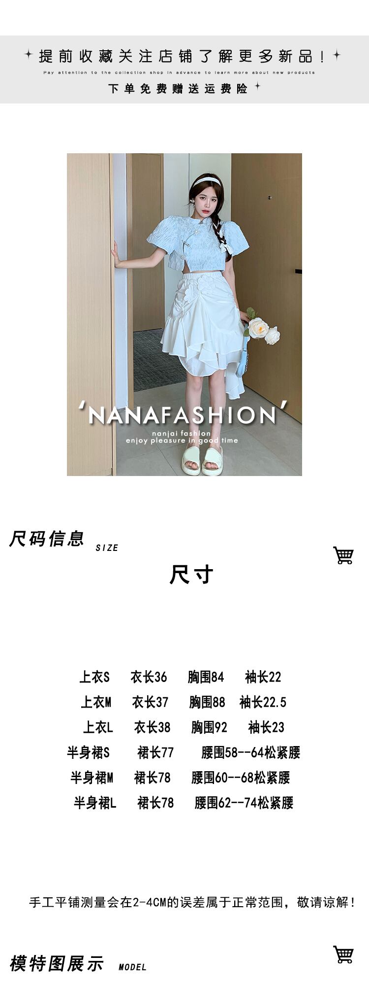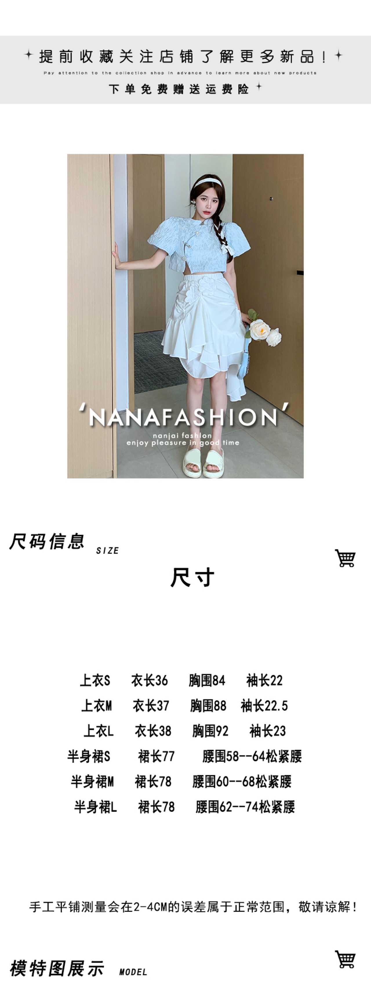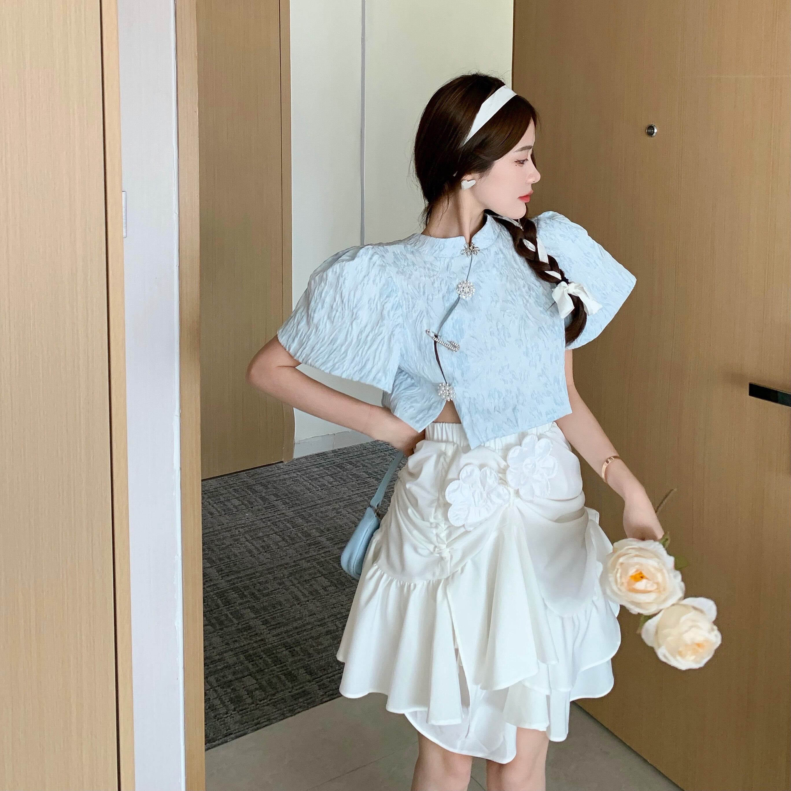 Age-reducing beautiful western-style suit 2022 summer new fashion short puff sleeve shirt high waist skirt women's clothing ハイウェスト ショート サマー 夏物 スカート nana38191161318 | modepoisson