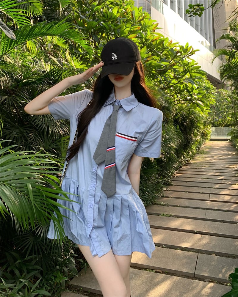 Waist dress women's 2022 summer new French temperament design sense niche college style pleated skirt プリーツ サマー 夏物 スカート nana76287666363 | modepoisson
