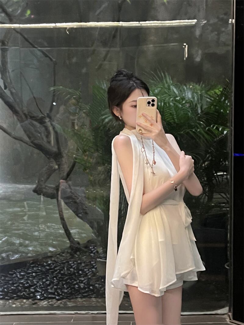 sense niche sleeveless chiffon top women's 2022 summer new high-end sense waist thin shirt trend シフォン サマー 夏物 ノースリーブ nana6162801176 | modepoisson