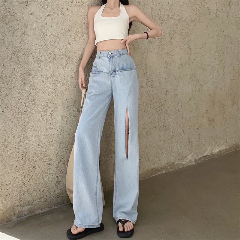 sense niche ripped jeans 2022 summer new wide-leg straight loose high-waisted drapey mopping pants women サマー 夏物 nana55217675371 | modepoisson