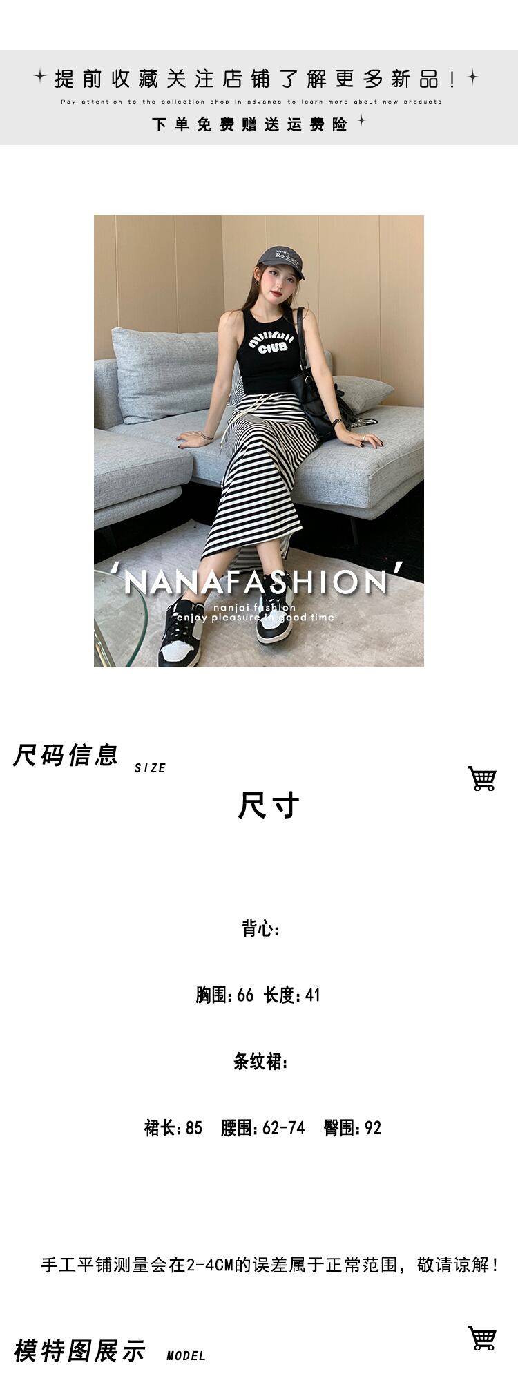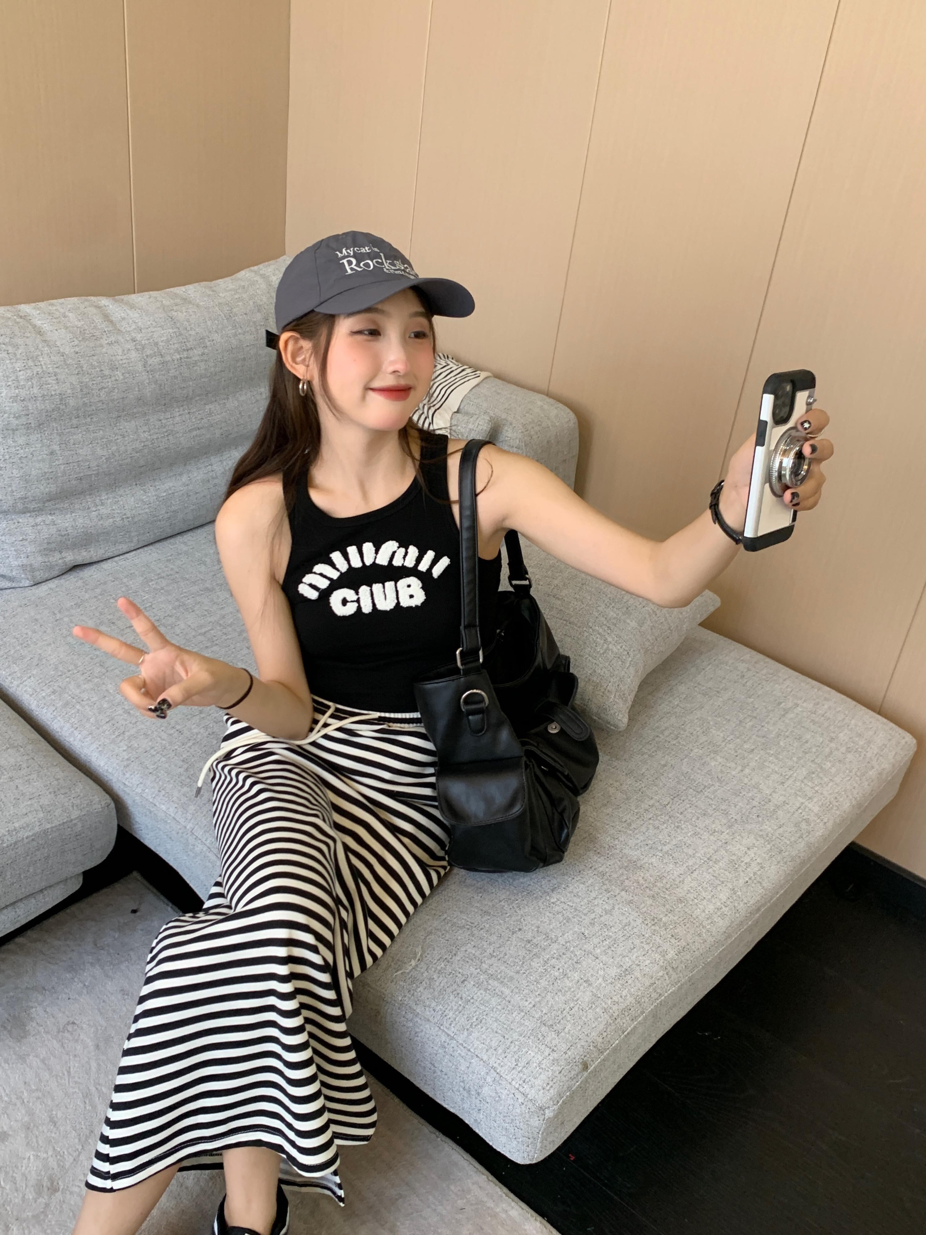 style wear two-piece suit 2022 summer new sleeveless knitted vest high waist striped skirt women ハイウェスト サマー 夏物 ノースリーブ スカート ストライプ nana13305620495 | modepoisson