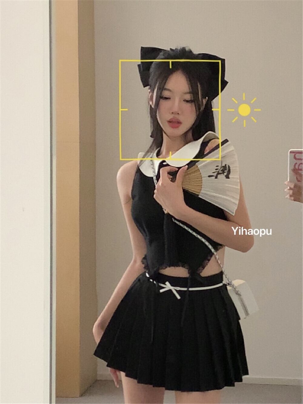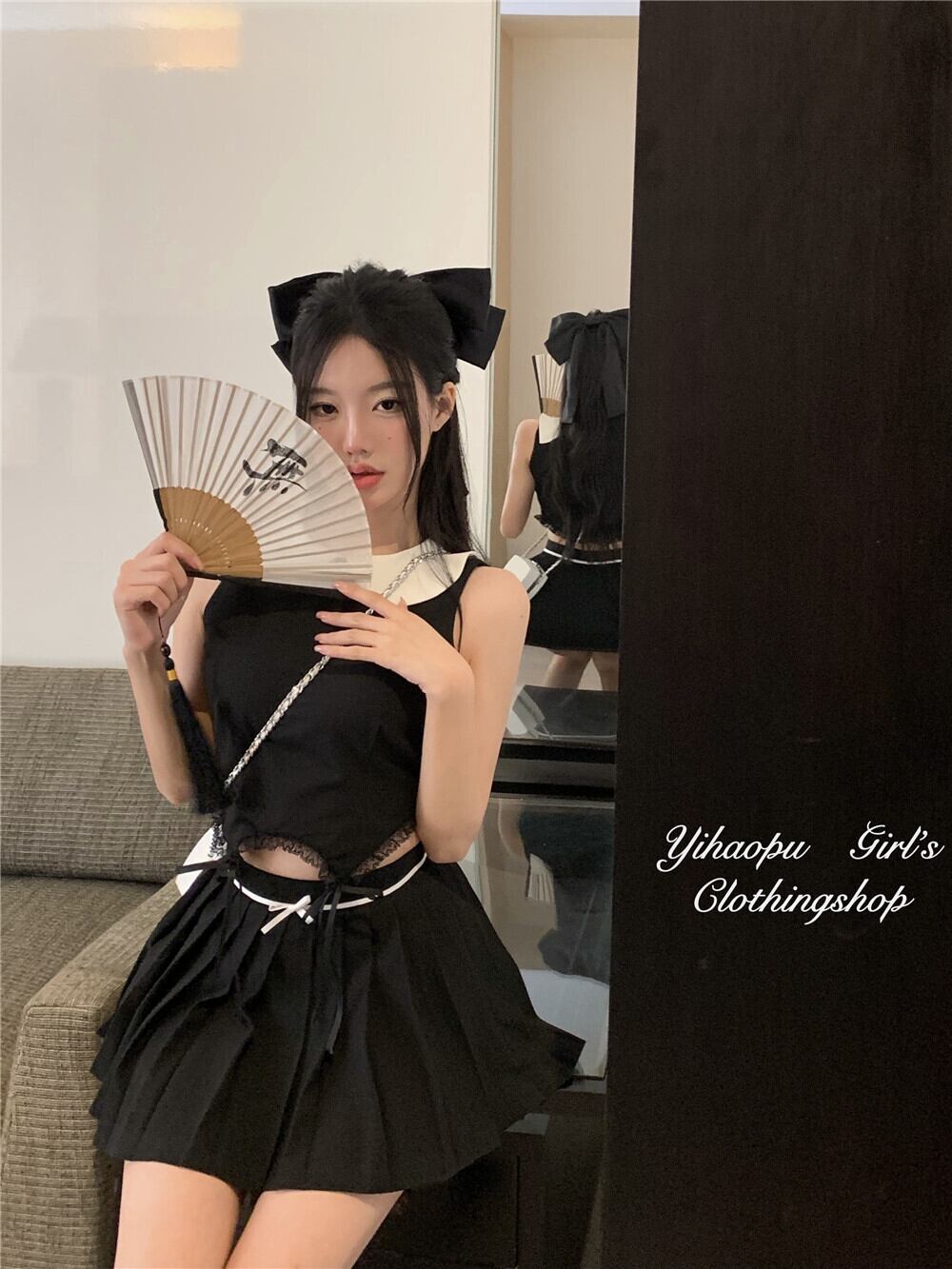 Small age reduction suit summer 2022 new fashion vest top high waist pleated skirt women's two-piece set ハイウェスト プリーツ サマー 夏物 スカート nana29783641110 | modepoisson