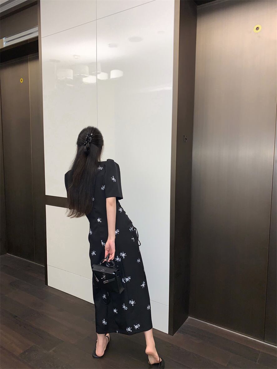 -end French rose dress women's 2022 summer new chic and beautiful temperament slim waist skirt サマー 夏物 スカート スリム nana18590431099 | modepoisson