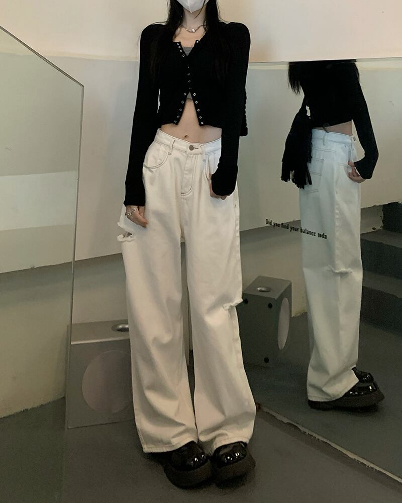 Thin White Jeans Summer 2022 Waist Thin Straight Loose Wide Leg Drape Pants ホワイト サマー 夏物 ワイドレッグ ワイドパンツ nana41315242301 | modepoisson