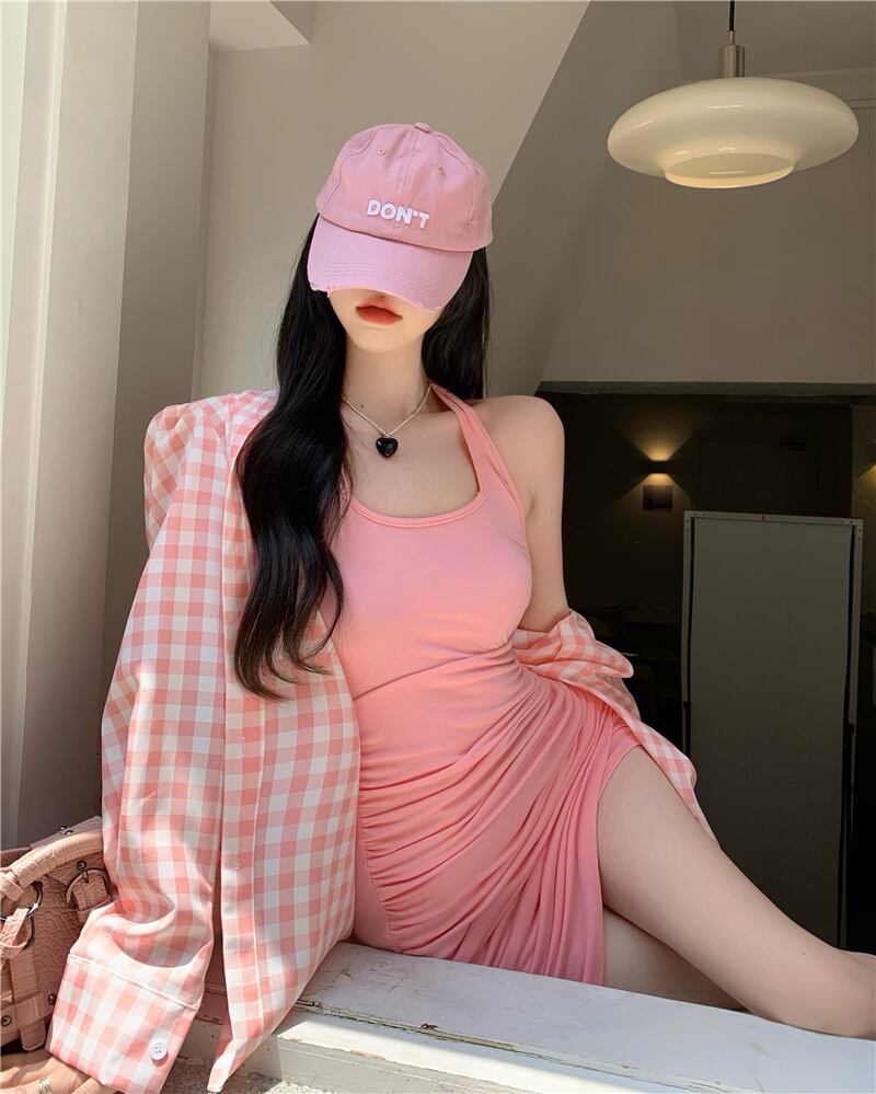 Salt series wear two-piece suit women's 2022 summer new fashion halter neck suspender dress plaid sunscreen shirt サマー 夏物 nana52658782219 | modepoisson