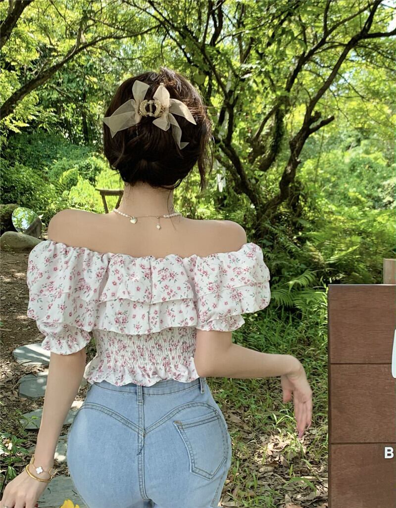 Chic and stunning top 2022 summer new floral design niche French unique short-sleeved shirt women's clothing サマー 夏物 花柄 nana51396321362 | modepoisson