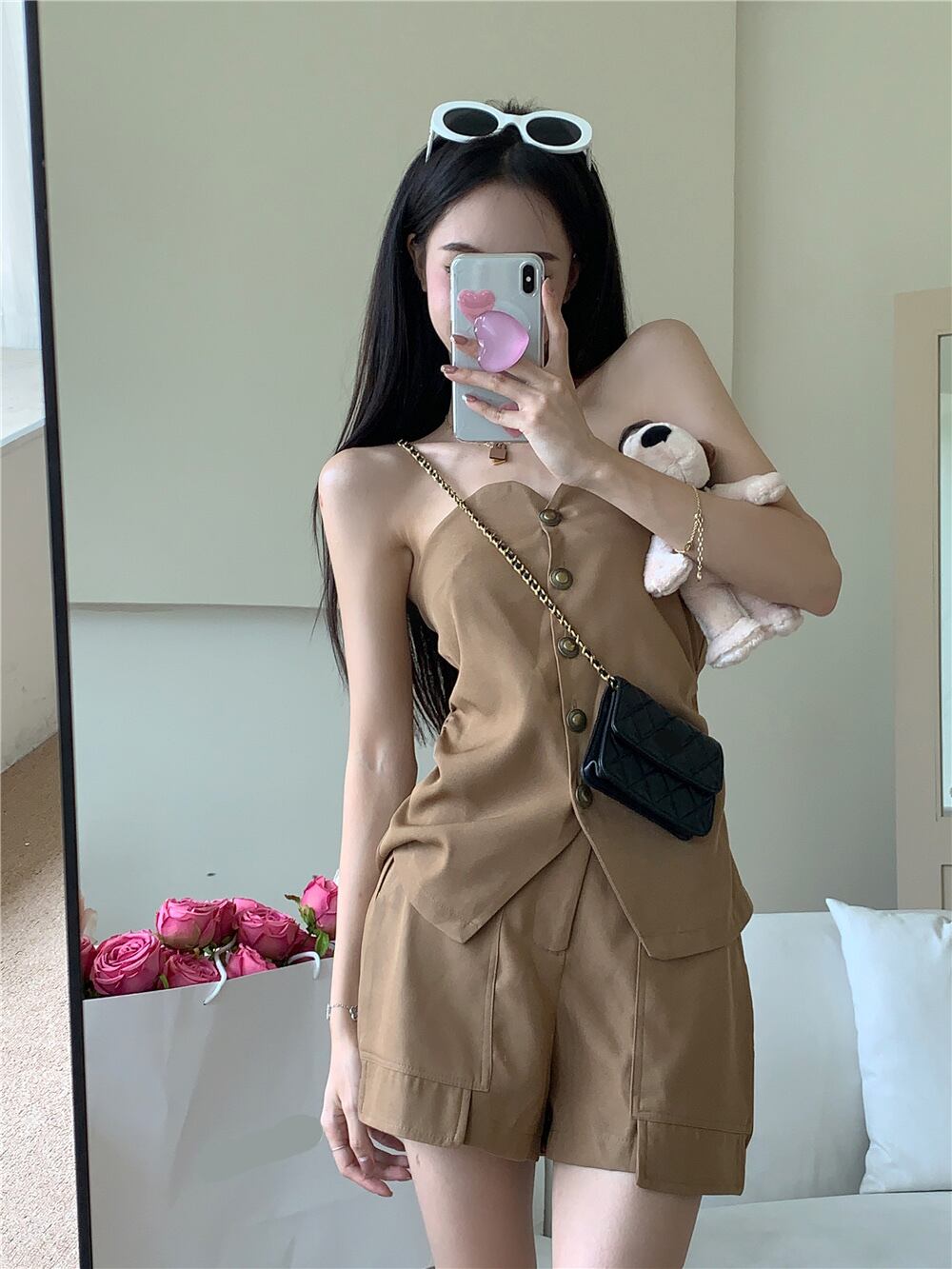 This year's popular beautiful suits 2022 summer new fashion thin tops high-waisted wide-leg shorts women's two-piece suit サマー 夏物 ショーツ ブルマー nana81041575198 | modepoisson