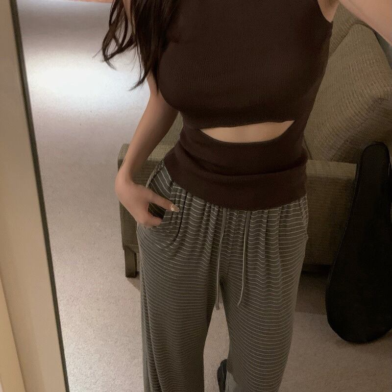 Royal sister suit two-piece summer 2022 new fashion sleeveless top high waist casual wide leg pants women's clothing ハイウェスト カジュアル サマー 夏物 ノースリーブ ワイドレッグ ワイドパンツ nana15048120174 | modepoisson