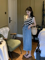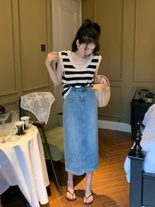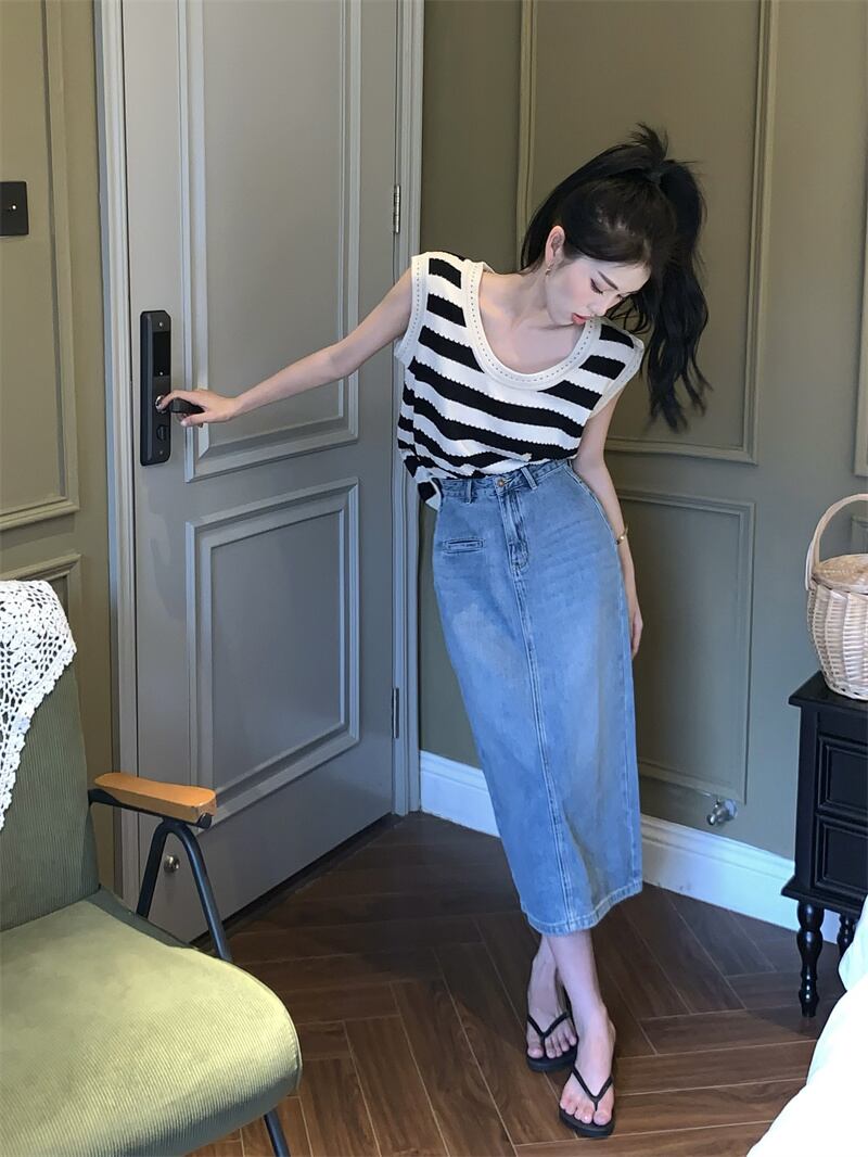 Sweet and spicy style suit skirt 2022 summer new fashion knitted vest slimming denim skirt women's two-piece suit 大人ガーリー スウィート キュート カジュアル サマー 夏物 スカート nana69393290108 | modepoisson