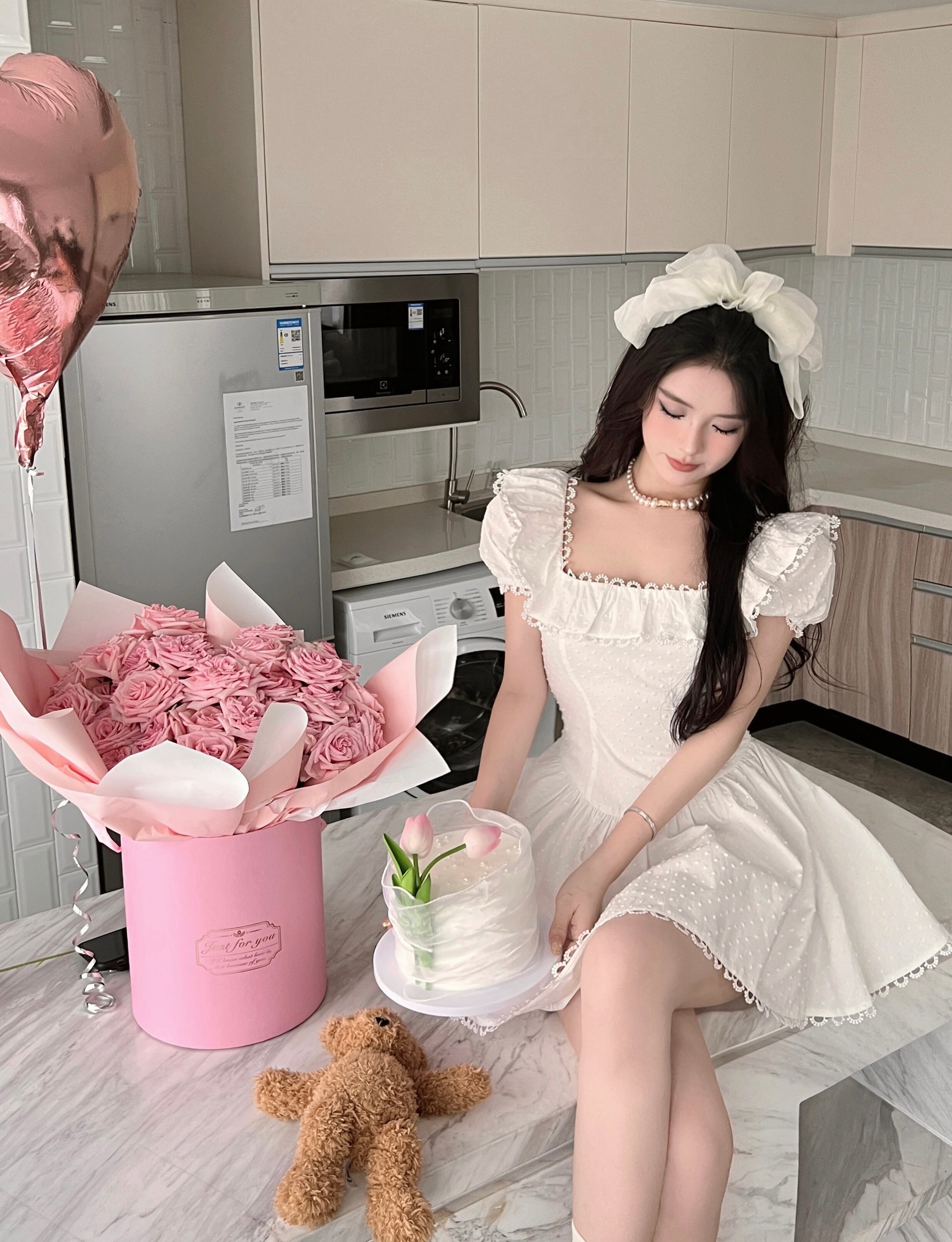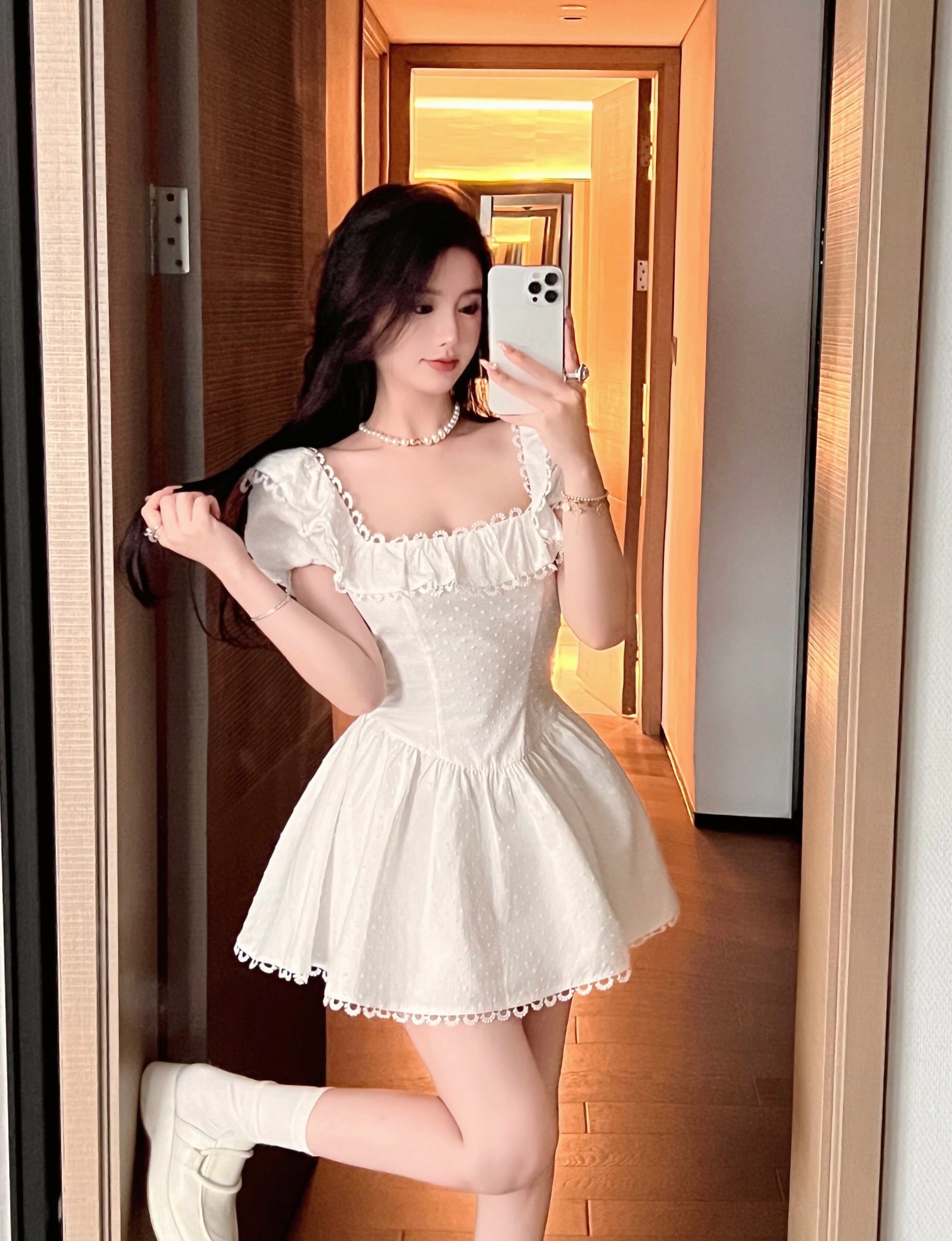 French ladies temperament skirt 2022 summer new white square neck puff sleeves slim and explosive dress women ホワイト サマー 夏物 スカート スリム スクウェア nana59282747867 | modepoisson