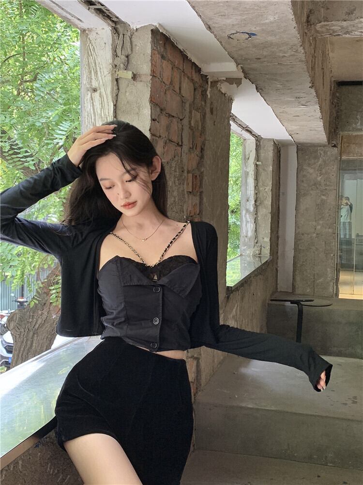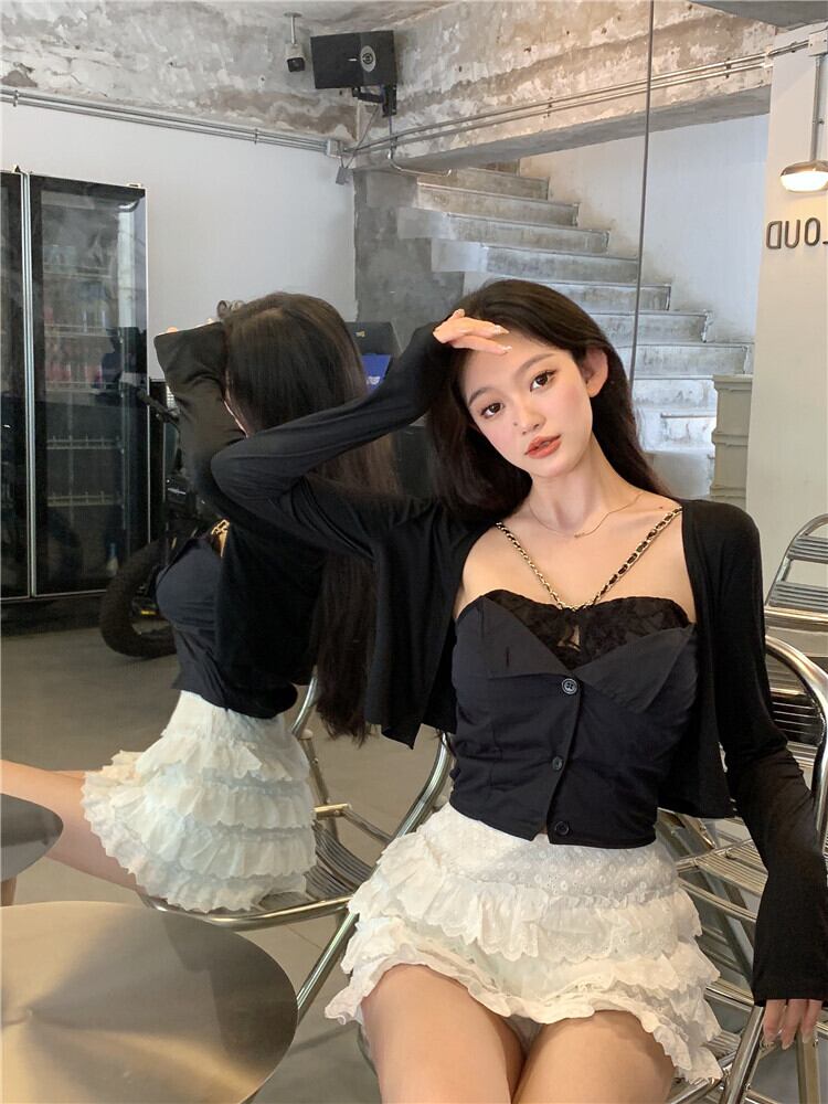 Net red fried street suit female 2022 summer new pure desire sweet cool wind tube top vest sunscreen cardigan top レッド ストリート 大人ガーリー スウィート キュート カジュアル カーディガン サマー 夏物 ピュア nana65751925540 | modepoisson