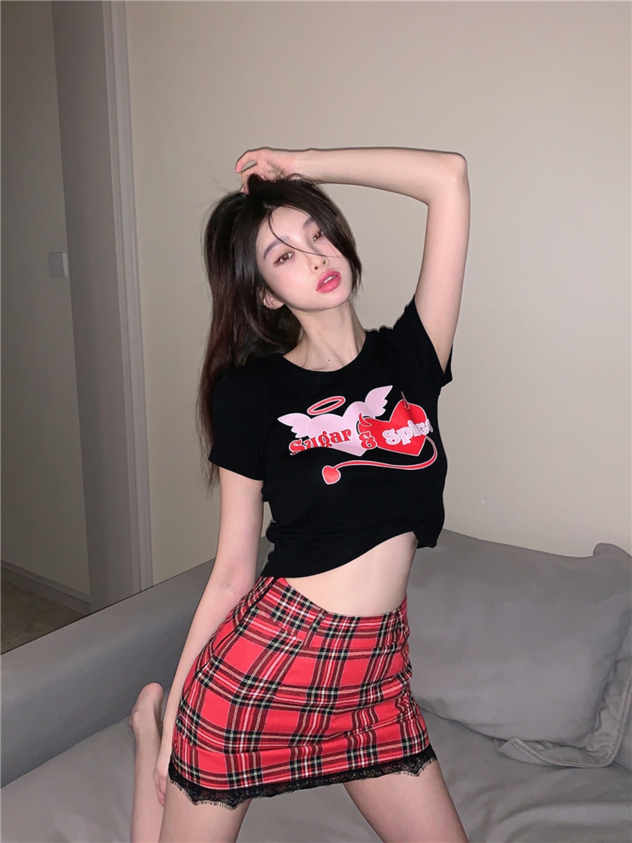 American retro summer love angel print t-shirt 2022 new slim pure desire short-sleeved top women's tide レトロ サマー 夏物 スリム Tシャツ ピュア nana20738565151 | modepoisson
