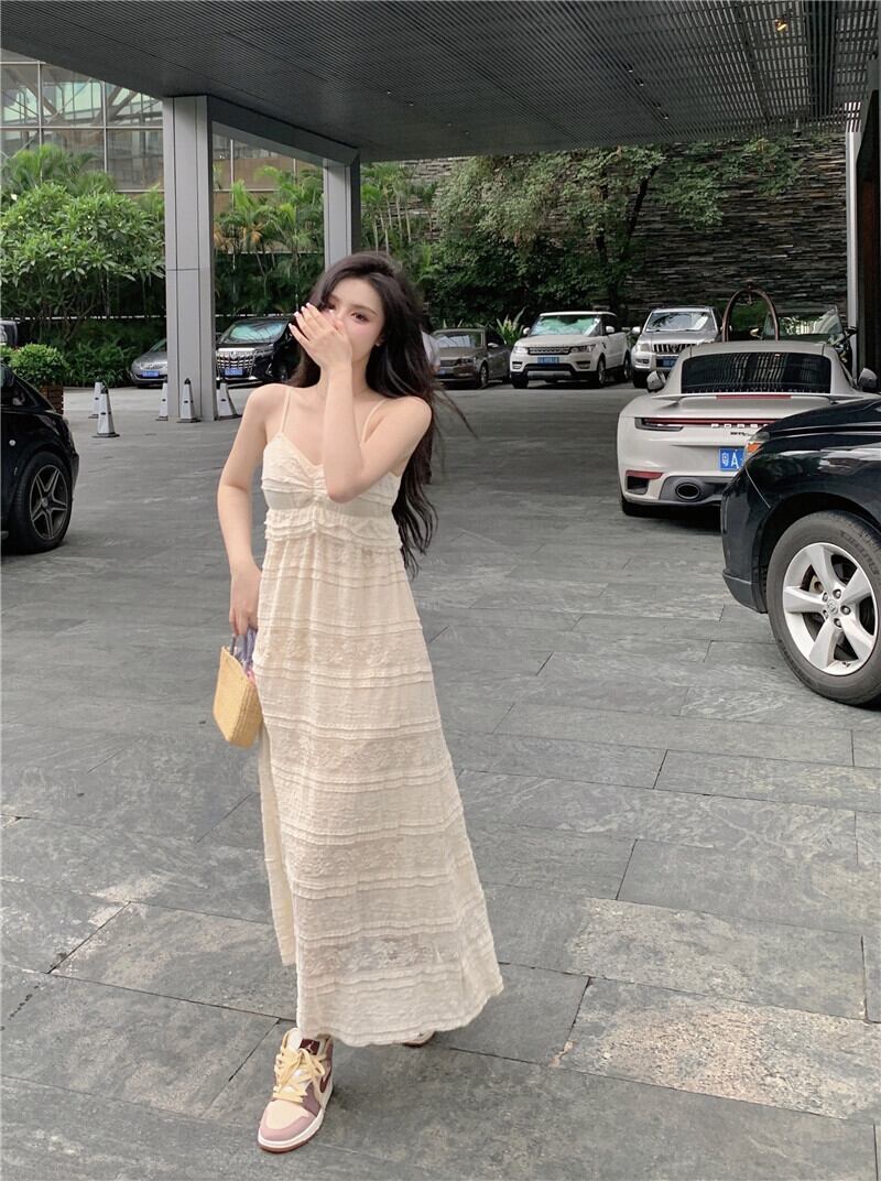 Refreshing dress 2022 summer new French niche temperament chic sleeveless sexy suspenders long skirt women ロング サマー 夏物 ノースリーブ スカート nana77388169458 | modepoisson