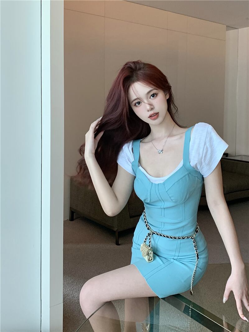 Sweet babes retro sexy bag hip suspender dress fashion 2022 summer new top two-piece suit women レトロ 大人ガーリー スウィート キュート カジュアル サマー 夏物 nana93780758834 | modepoisson