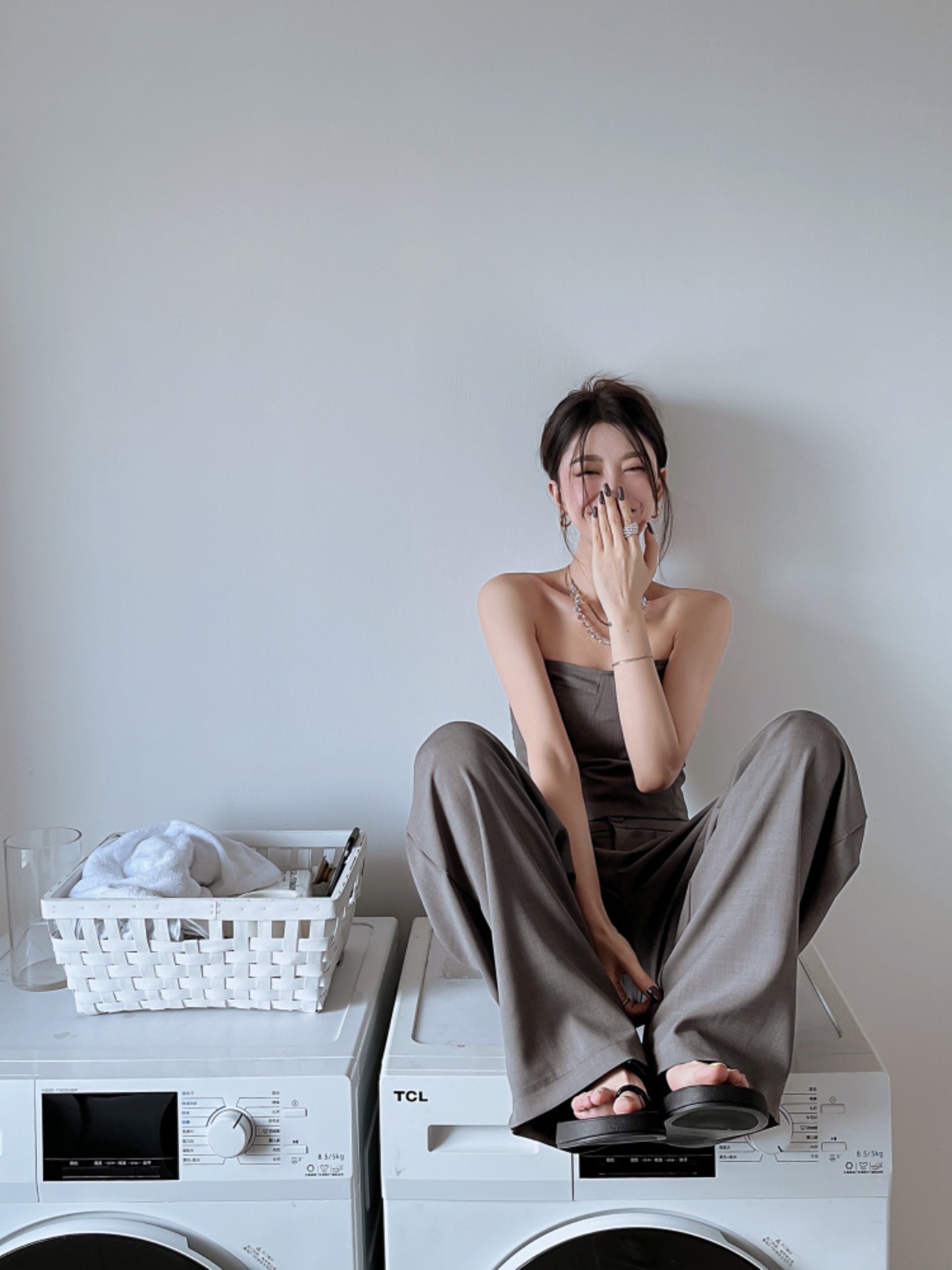 -end women's suits 2022 summer new fashion tube top vest casual drape wide-leg pants two-piece set カジュアル サマー 夏物 nana9710508212 | modepoisson