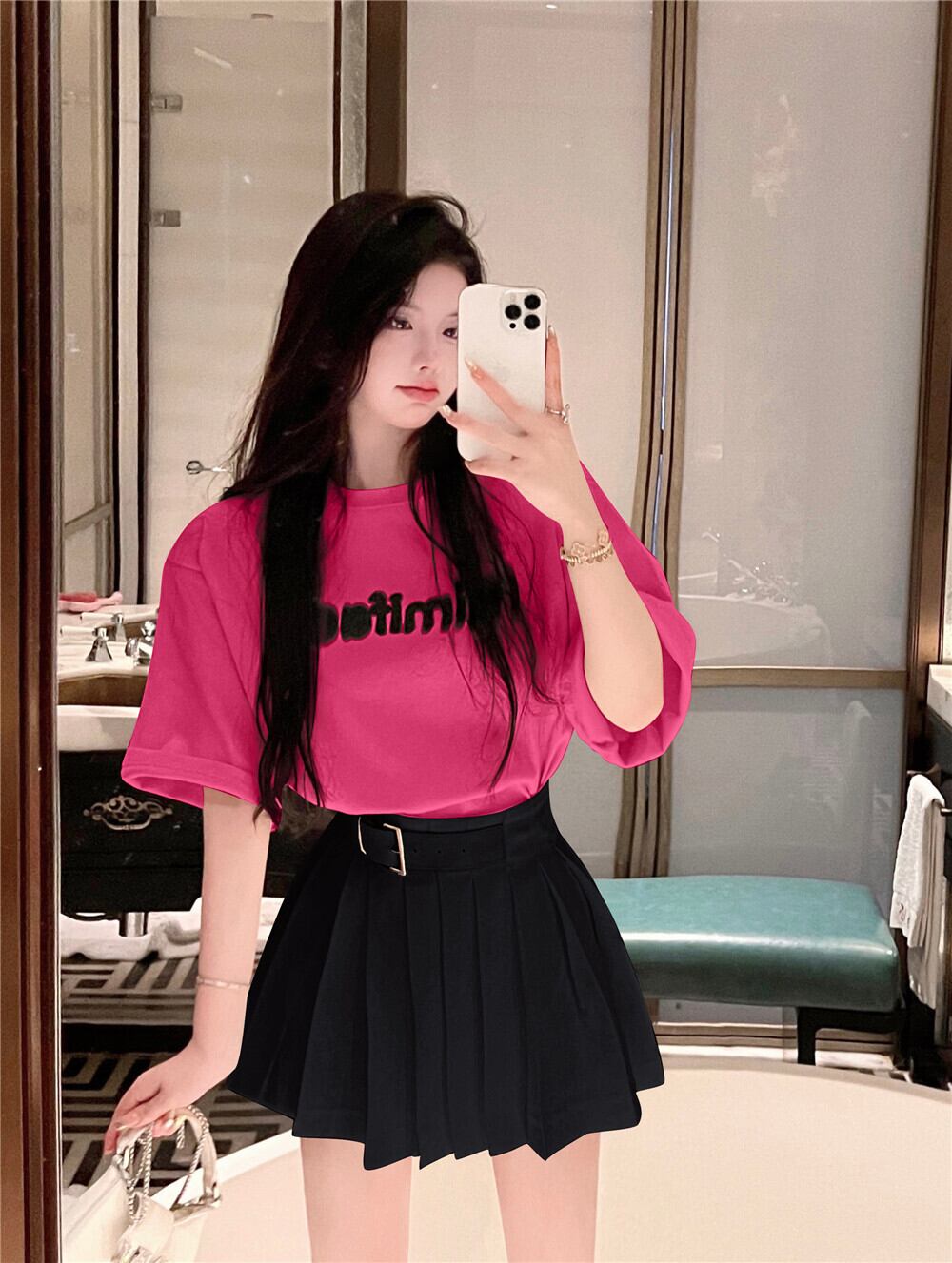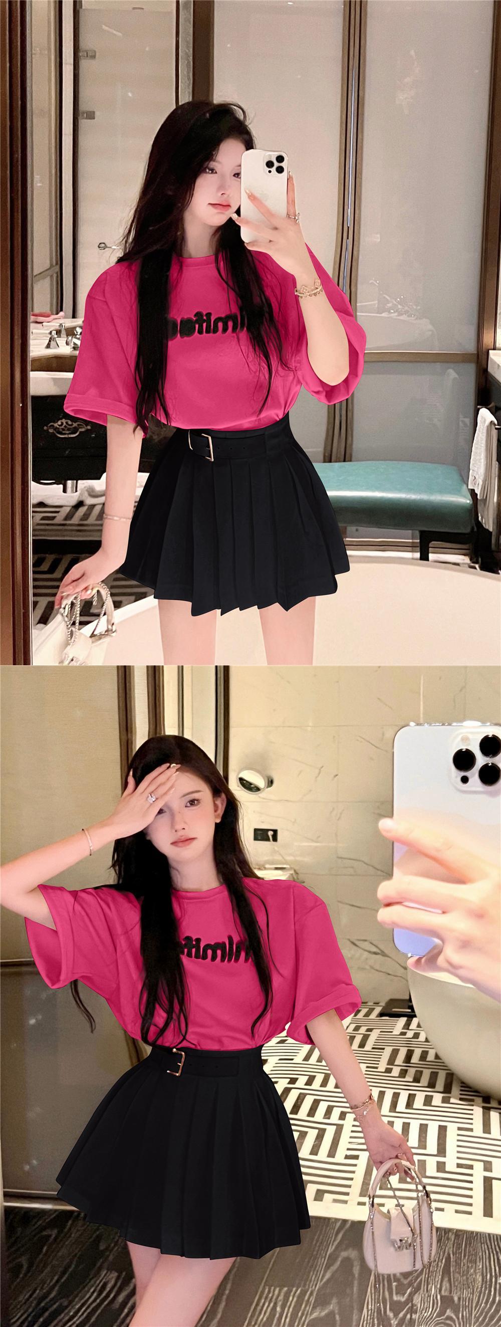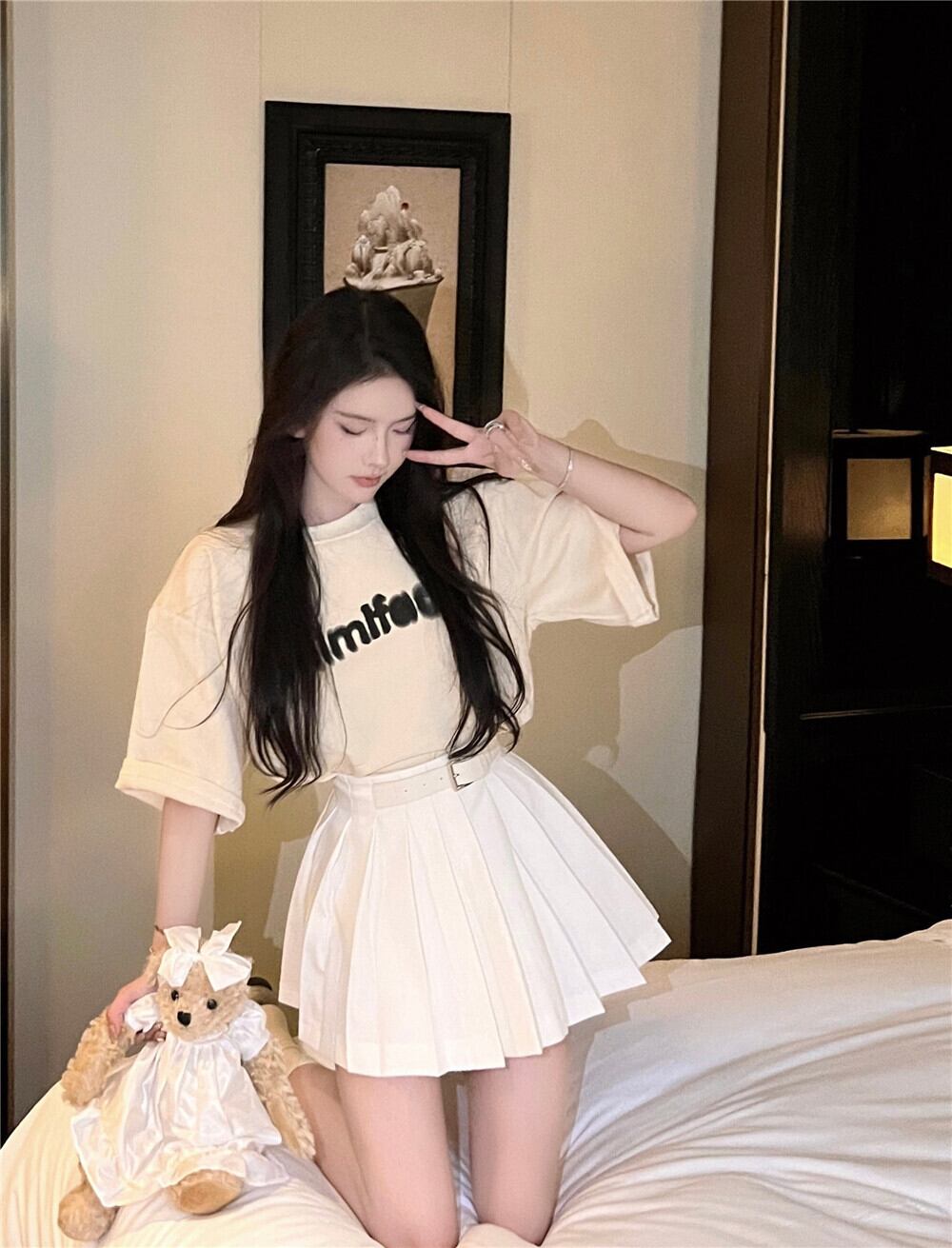 Age-reducing beautiful Western-style suit 2022 summer new letter short-sleeved top high-waisted slim pleated skirt women プリーツ サマー 夏物 スカート スリム nana17062499504 | modepoisson