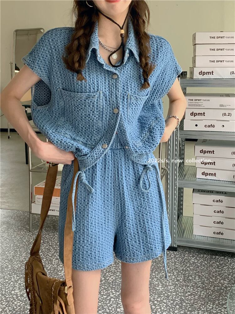 Sweet and salty fried street suit women's 2022 summer new fashion temperament loose denim shirt casual shorts カジュアル ストリート 大人ガーリー スウィート キュート サマー 夏物 ショーツ ブルマー nana79797504829 | modepoisson