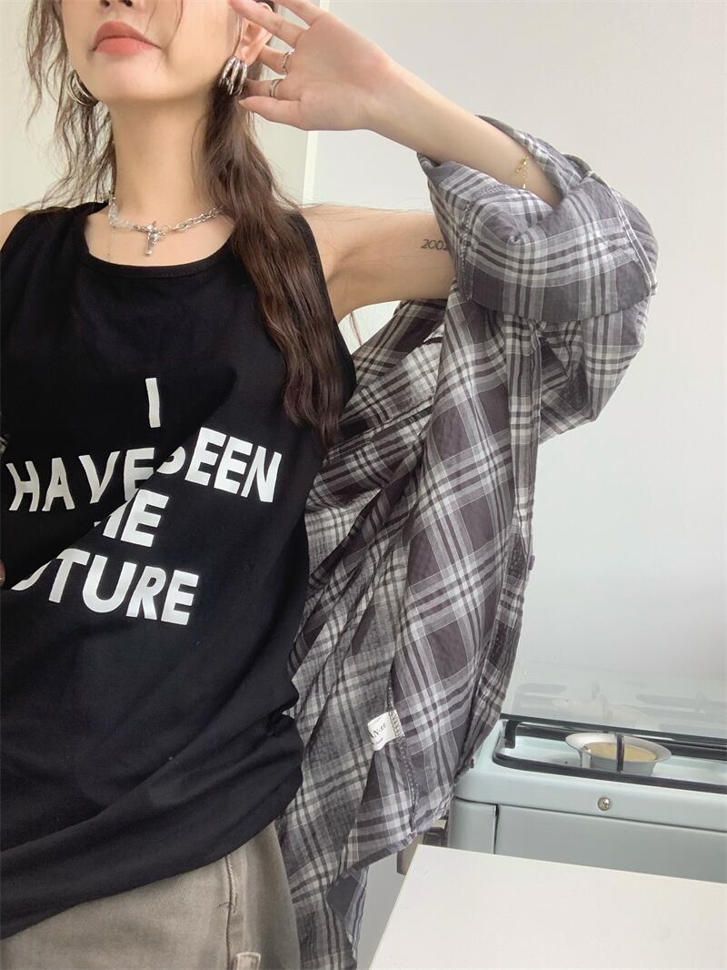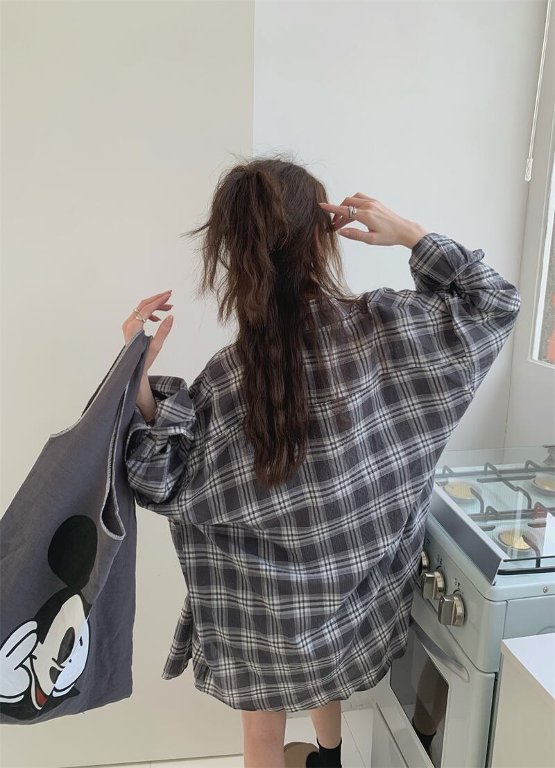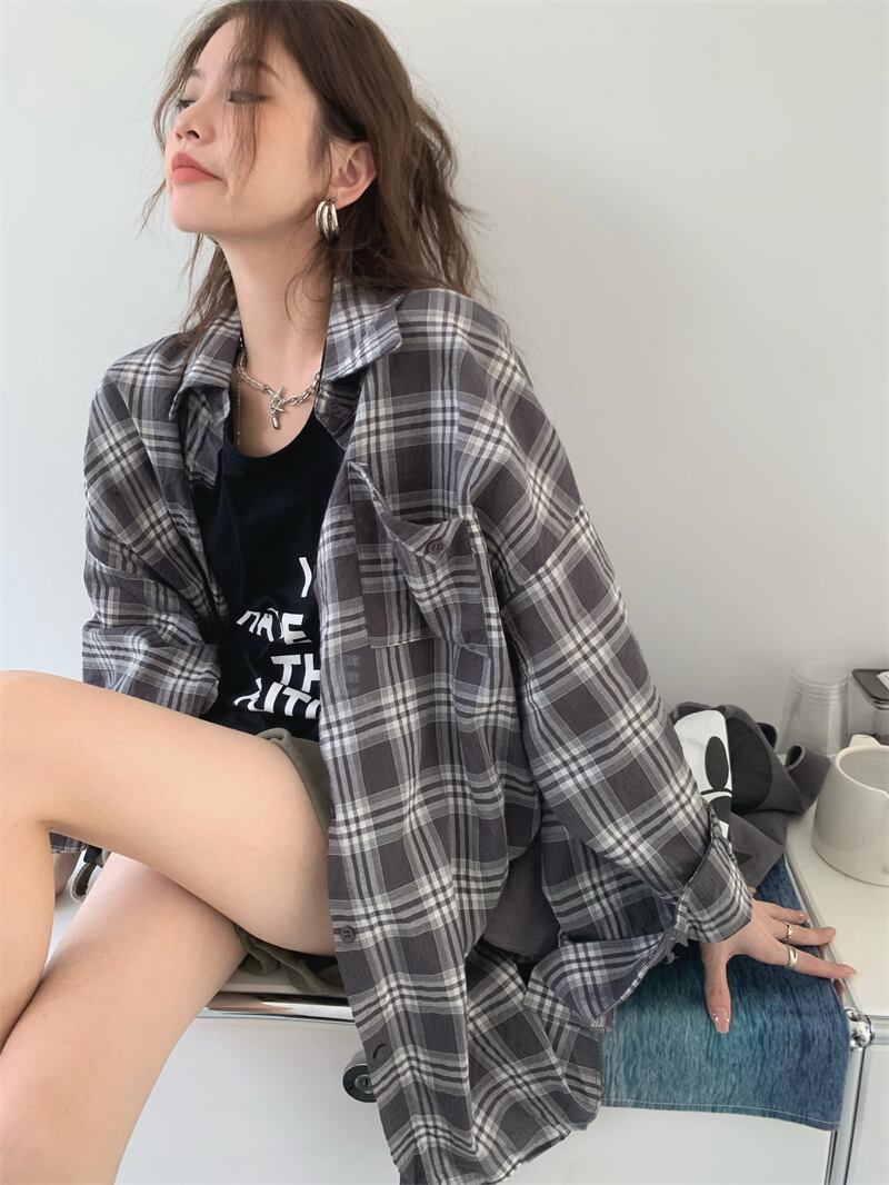 Mid-length loose long-sleeved sunscreen plaid shirt 2022 summer new design niche cardigan top ladies ロング カーディガン サマー 夏物 nana67243469316 | modepoisson