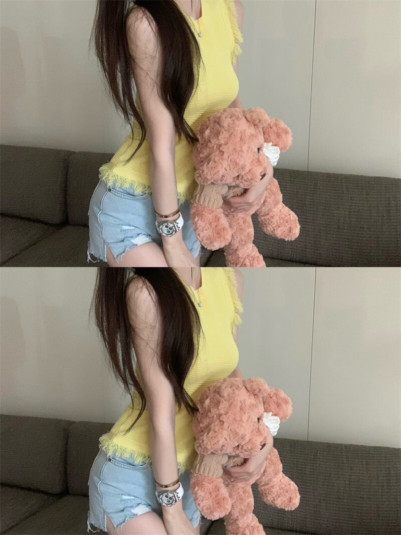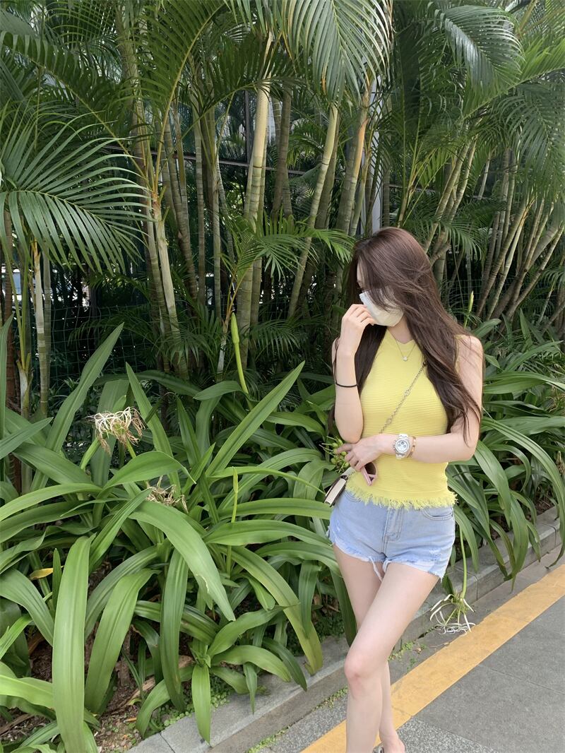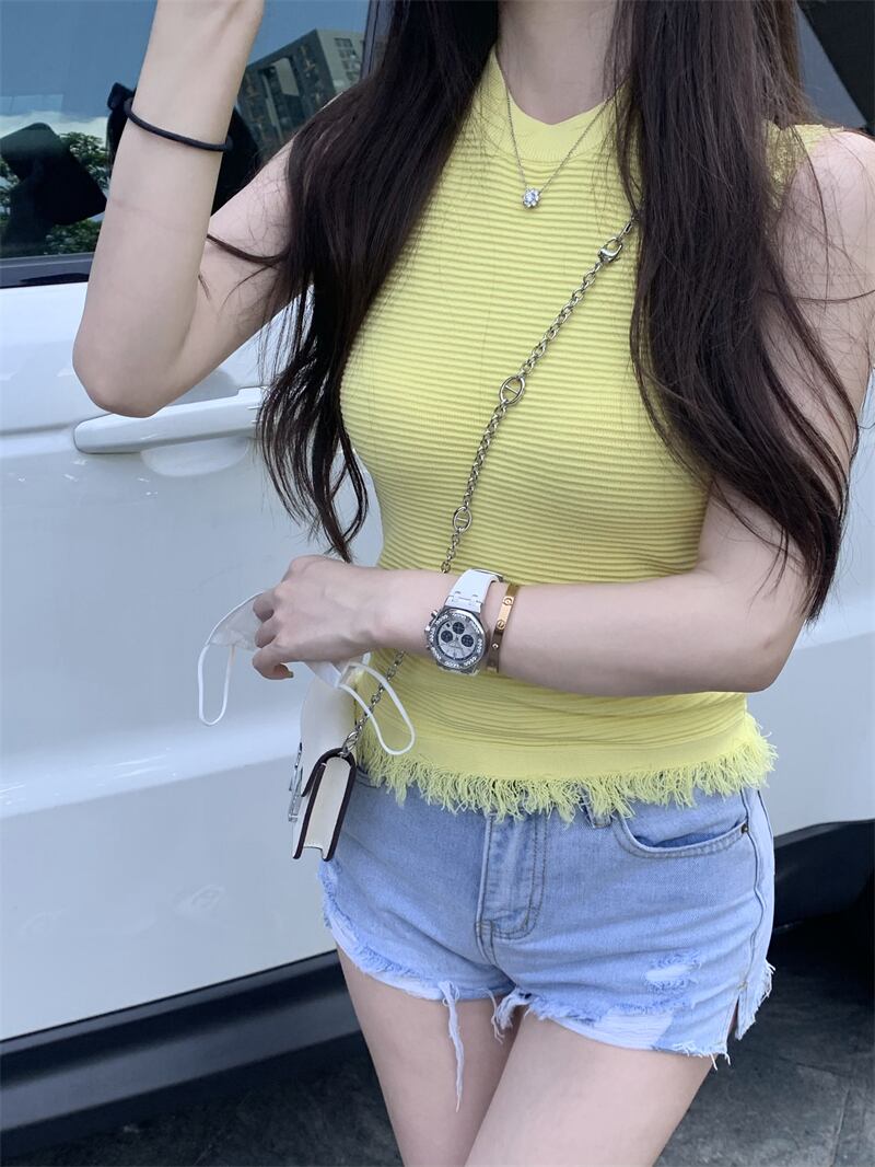 Slim knitted sleeveless t-shirt women's 2022 summer new design niche unique unique vest top サマー 夏物 ノースリーブ Tシャツ nana56221161237 | modepoisson