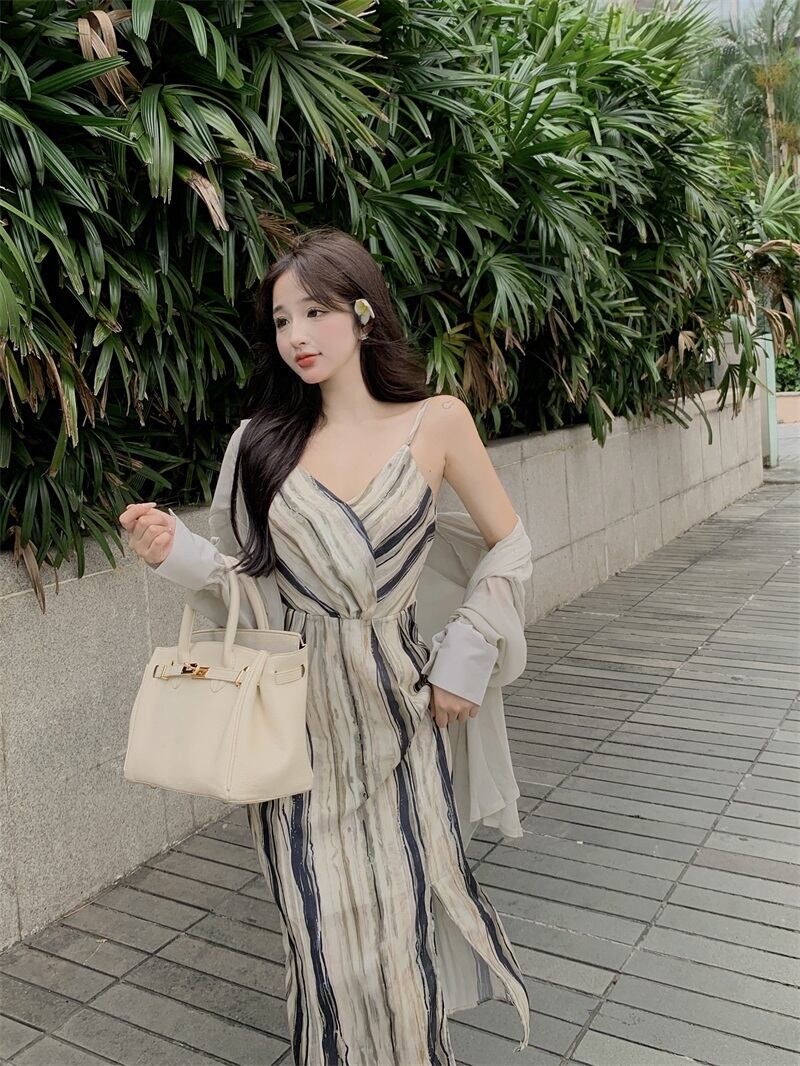 Yujie light cooked Hong Kong flavor suit skirt 2022 summer new design sense niche shirt striped suspender dress female サマー 夏物 スカート ストライプ nana12287685442 | modepoisson