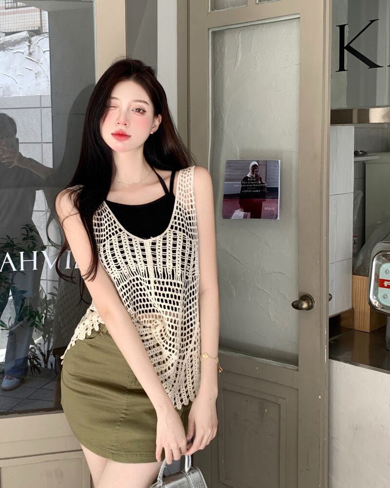 Summer suit 2022 new knitted vest with sleeveless suspender top tooling skirt three-piece women's clothing サマー 夏物 ノースリーブ スカート nana16360984227 | modepoisson