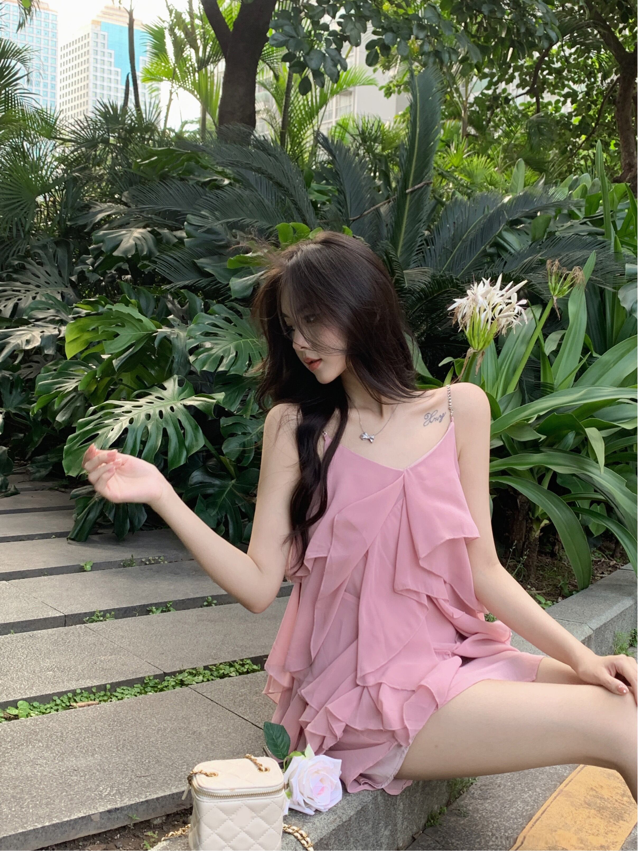 Irregular sleeveless chiffon suspender dress female 2022 summer new French temperament explosion cake short skirt ショート シフォン サマー 夏物 ノースリーブ スカート nana58022688921 | modepoisson