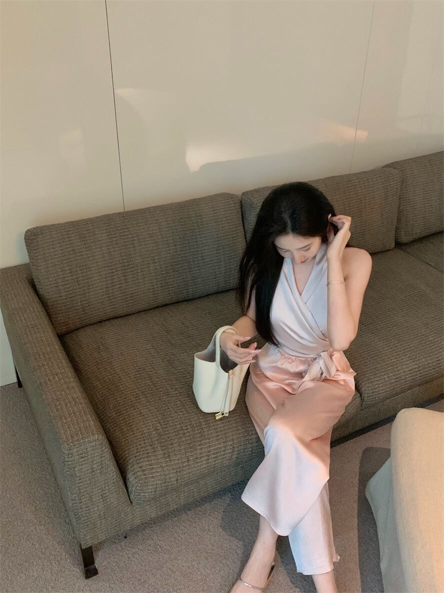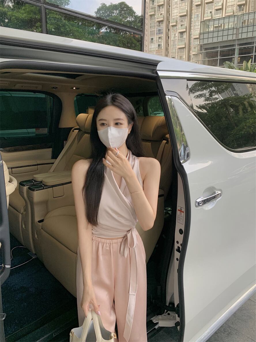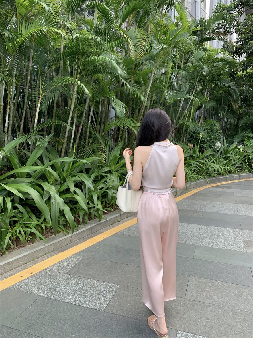 Summer suit women's 2022 new bandage v-neck waist halter sleeveless top temperament straight-leg casual nine-point pants カジュアル サマー 夏物 ノースリーブ Vネック nana78982215322