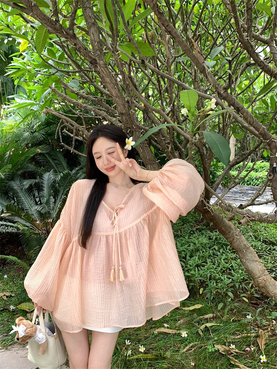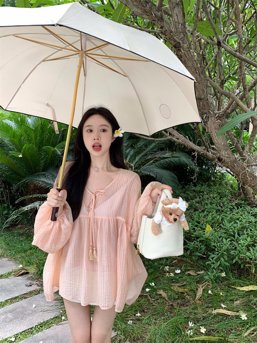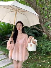Age-reducing beautiful western-style suit 2022 summer new puff sleeve sunscreen top sexy sling two-piece women's clothing サマー 夏物 nana77777879772 | modepoisson