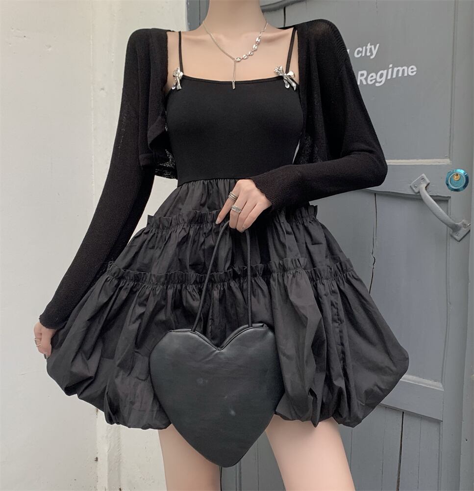 Light cooked two-piece suit skirt 2022 summer new sexy suspender dress fashionable temperament cardigan top women's clothing カーディガン サマー 夏物 スカート nana71821513652 | modepoisson
