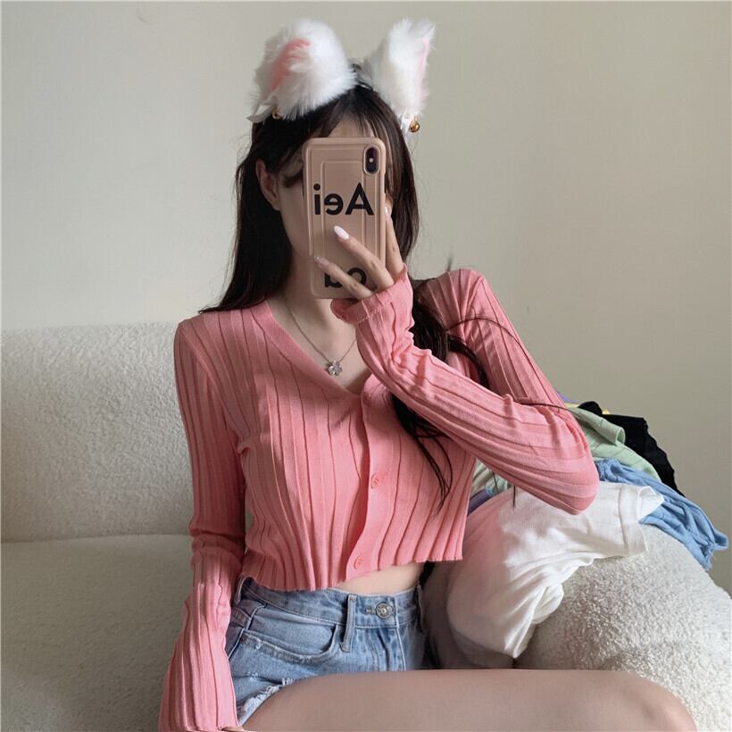 Sunscreen Knitwear Women's Summer 2022 Small Cardigan Short Thin Coat Long Sleeve Top ショート ロング 長袖 カーディガン サマー 夏物 nana51739245065 | modepoisson