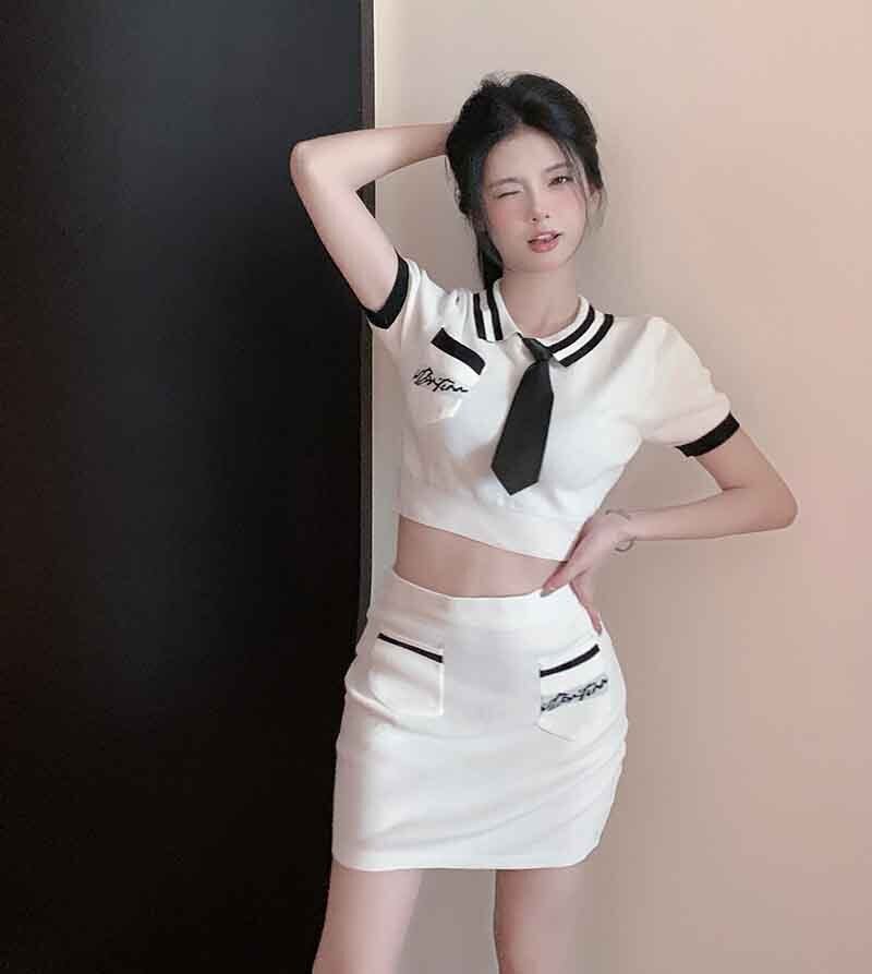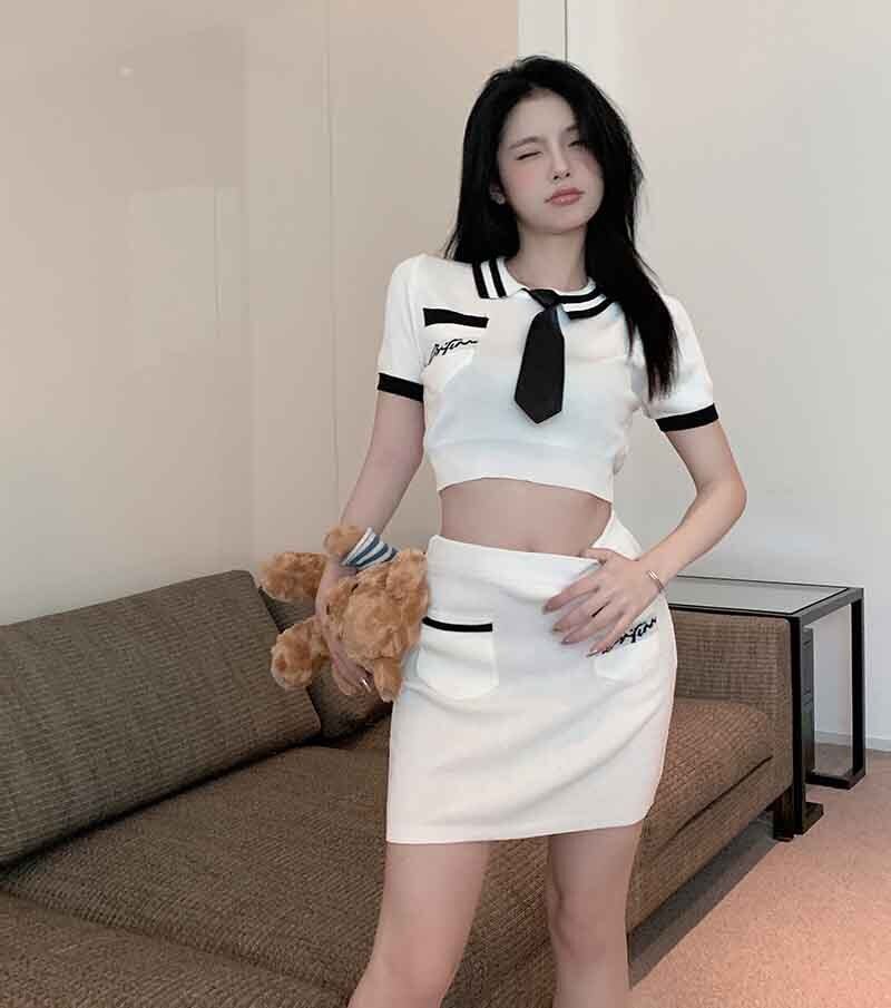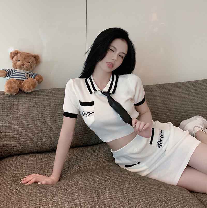 Suit women's 2022 summer new age-reducing white knitted top with hips skirt can be salty or sweet two-piece set ホワイト 大人ガーリー スウィート キュート カジュアル サマー 夏物 スカート nana92851704983 | modepoisson