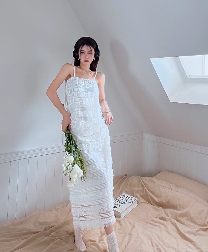 French design niche lace cake skirt 2022 summer new temperament fairy white suspender dress ホワイト レース サマー 夏物 スカート nana68654903395 | modepoisson