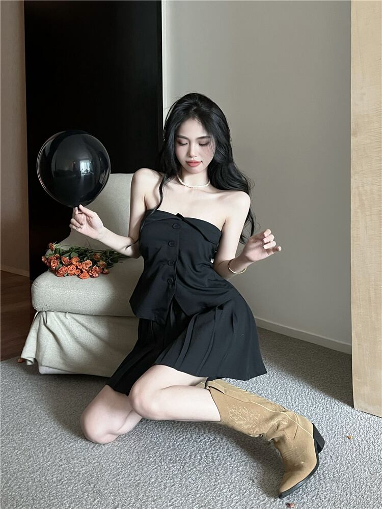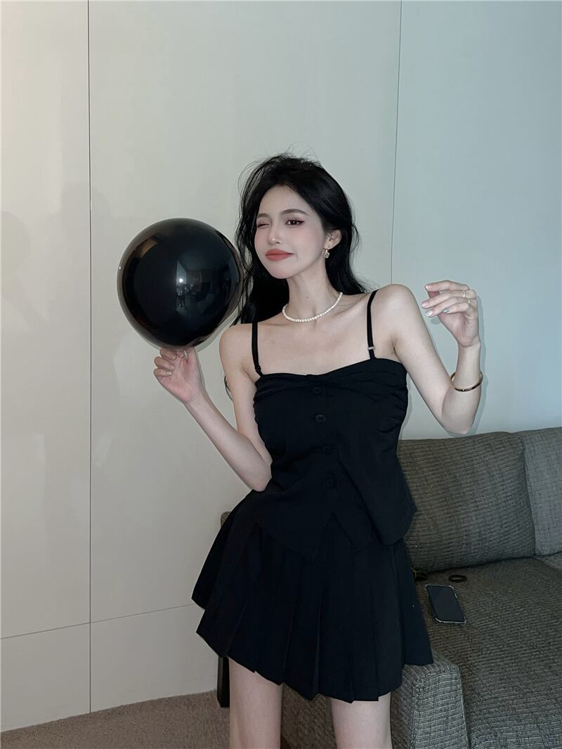 Pure lust style suit female 2022 summer new show thin tube top suspender top high waist pleated skirt ハイウェスト プリーツ サマー 夏物 スカート nana10345078402 | modepoisson