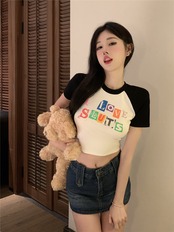 Short top women's 2022 summer new French design sense niche chic unique slim short-sleeved t-shirt trend ショート サマー 夏物 スリム Tシャツ nana7365066929 | modepoisson