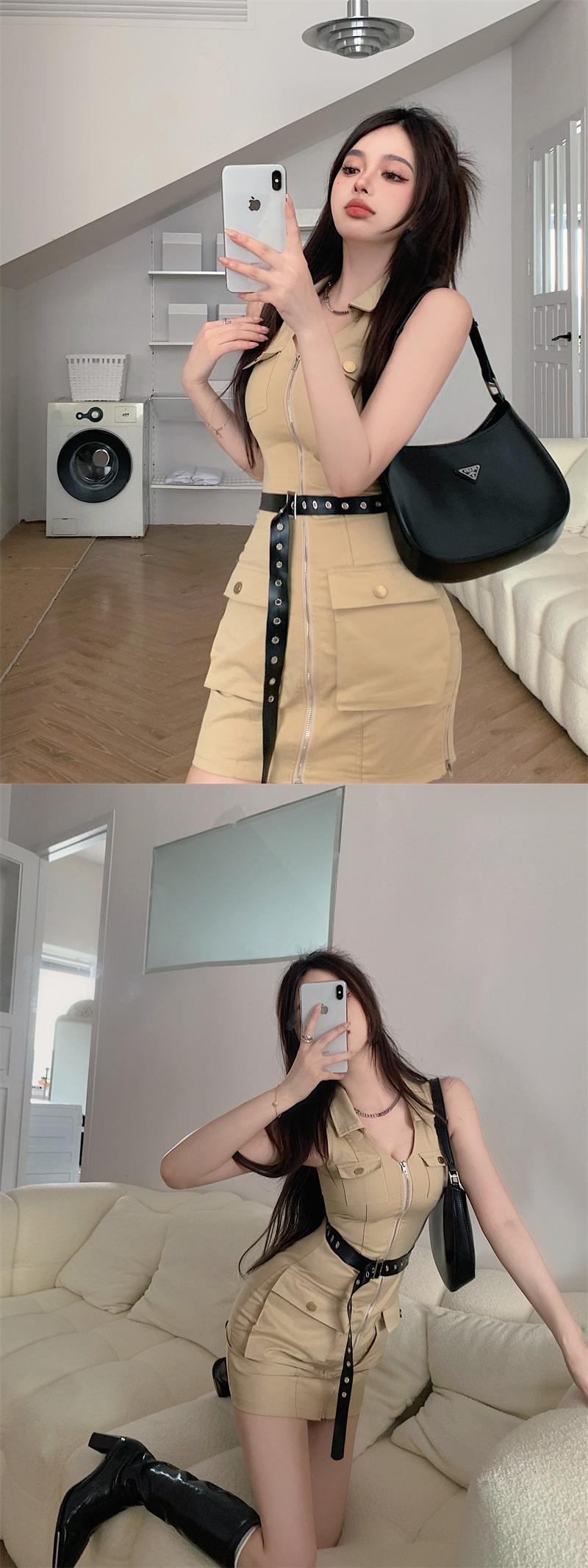 Hong Kong style retro slimming tooling denim waist dress female 2022 summer new age-reducing beautiful western-style skirt レトロ サマー 夏物 スカート nana76576682780 | modepoisson