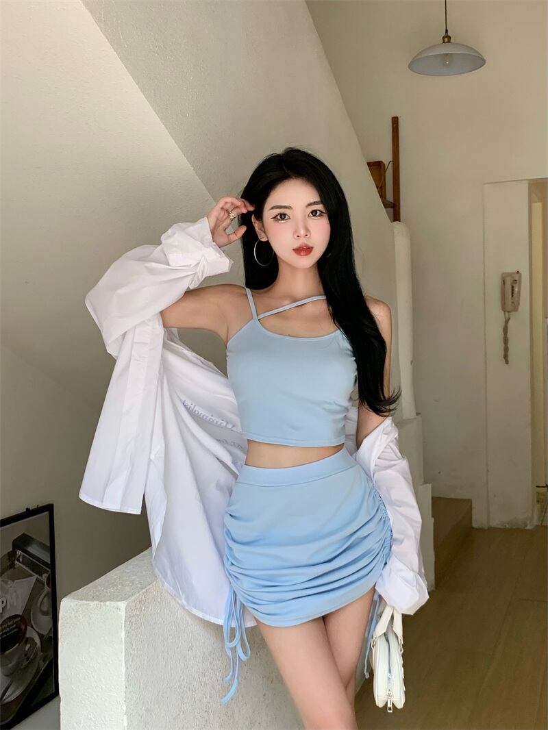 Summer suits 2022 new suspender tops are thin and drawstring skirts salt series ladies two-piece summer women サマー 夏物 スカート nana64125206179 | modepoisson