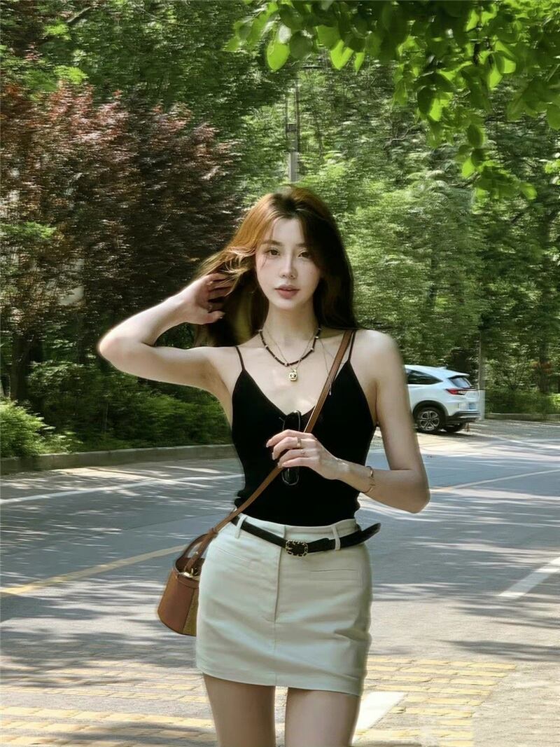 Net red fried street two-piece suit female 2022 summer new western style retro camisole high waist slim skirt ハイウェスト レッド レトロ ストリート サマー 夏物 スカート スリム nana8067091227 | modepoisson