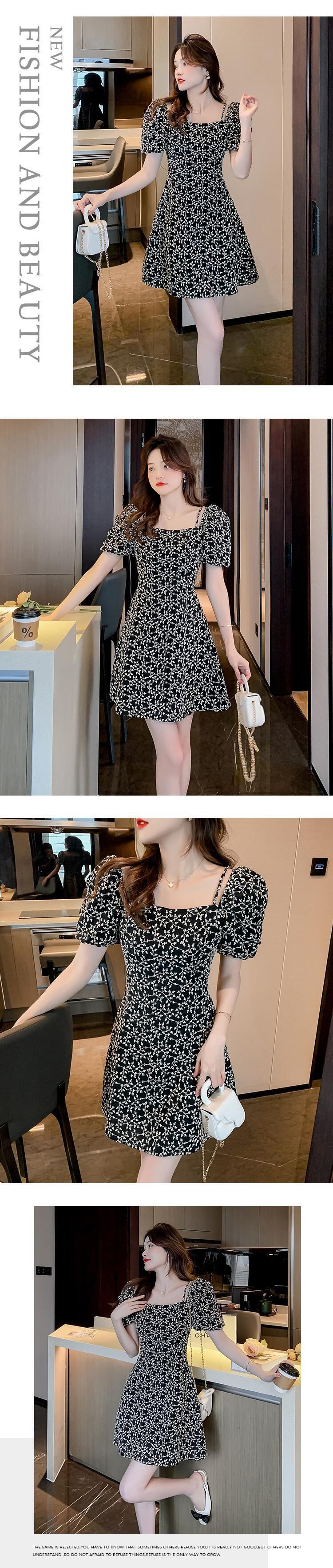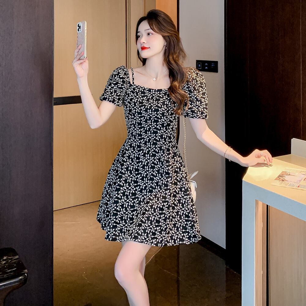 2022 summer new French high-end fashion square neck embroidered waist thin short a-line dress women's ショート レッド 刺繍 サマー 夏物 Aライン スクウェア nana6204144489 | modepoisson