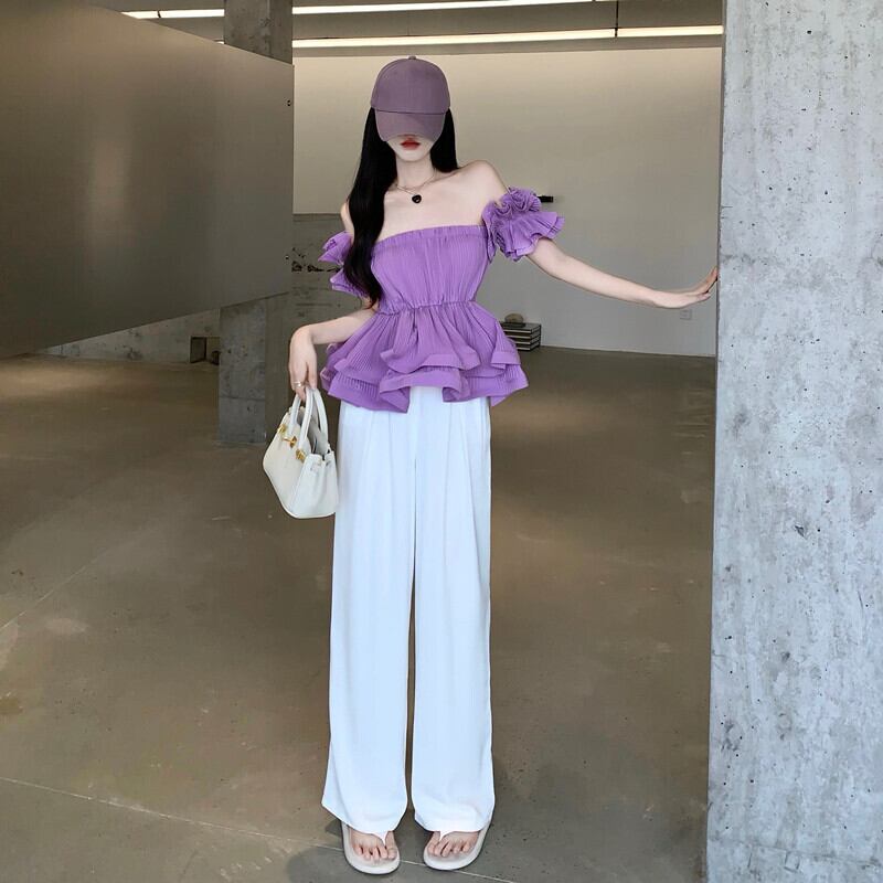 Age-reducing beautiful western style suit 2022 summer new fashion temperament top high waist wide leg pants women's two-piece suit ハイウェスト サマー 夏物 ワイドレッグ ワイドパンツ nana5287956289 | modepoisson