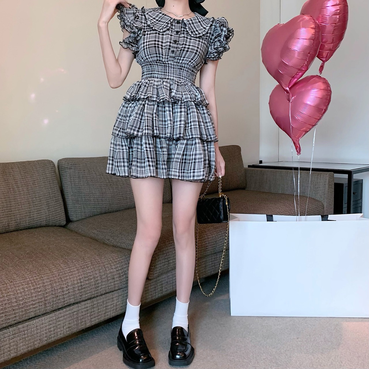 French niche chic temperament dress women's 2022 summer new waist and thin heavy industry a-line short skirt ショート サマー 夏物 スカート Aライン nana28572868186 | modepoisson