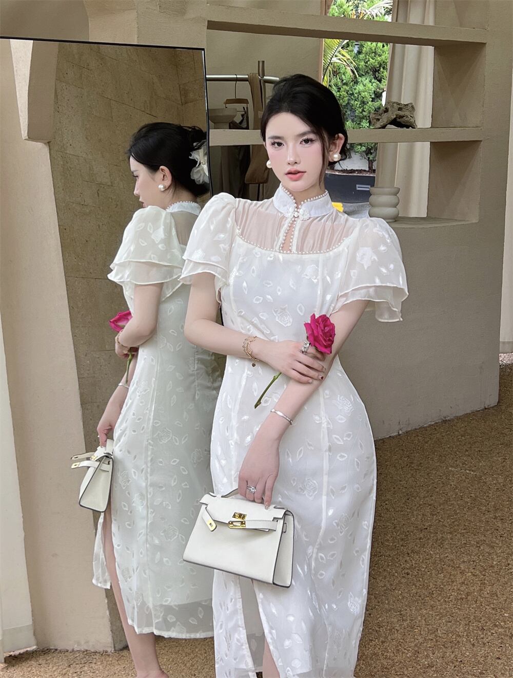 -quality cheongsam, young , daily summer French fairy, retro, republic of China style dress, long skirt ロング レトロ サマー 夏物 スカート nana99323978430 | modepoisson